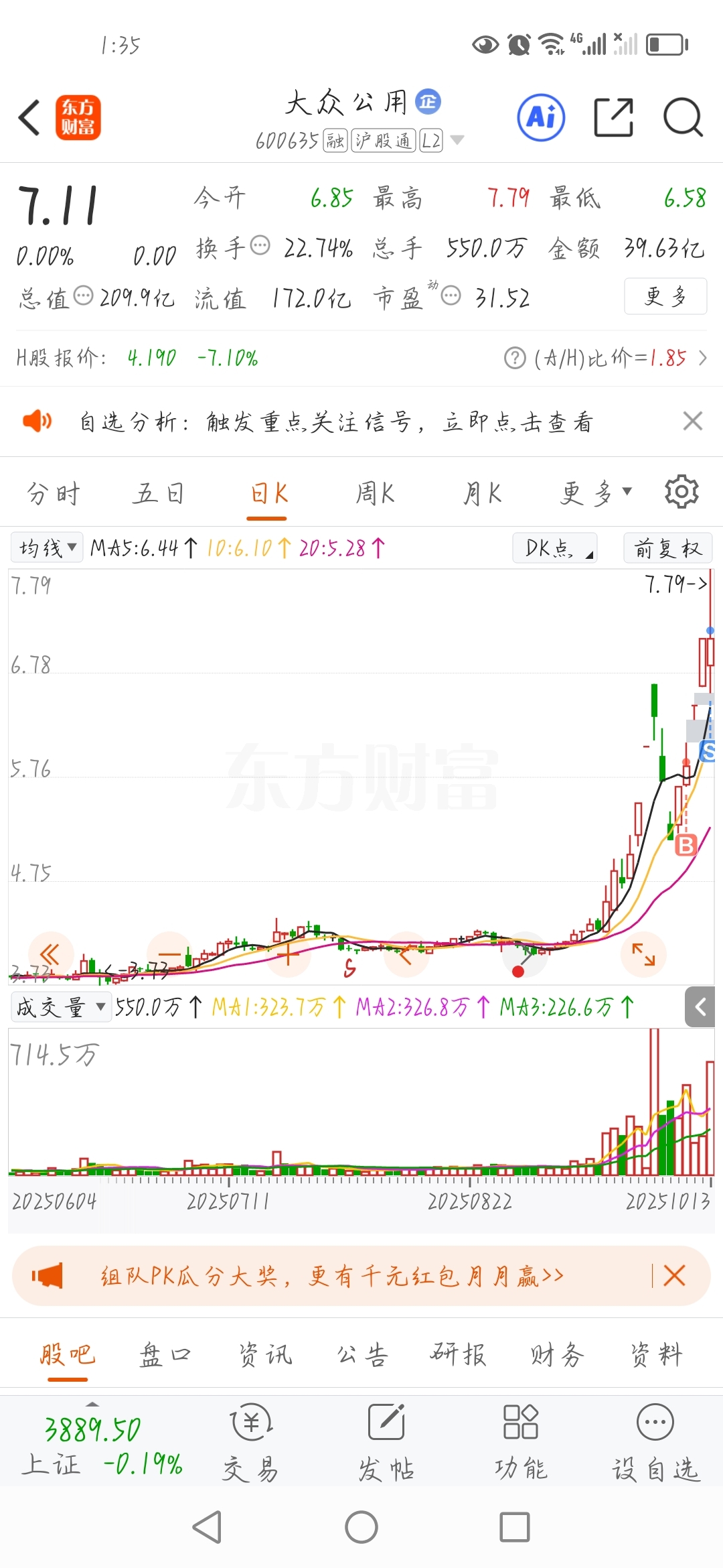 $大众公用(SH600635)$ 挣了24个点安全落袋