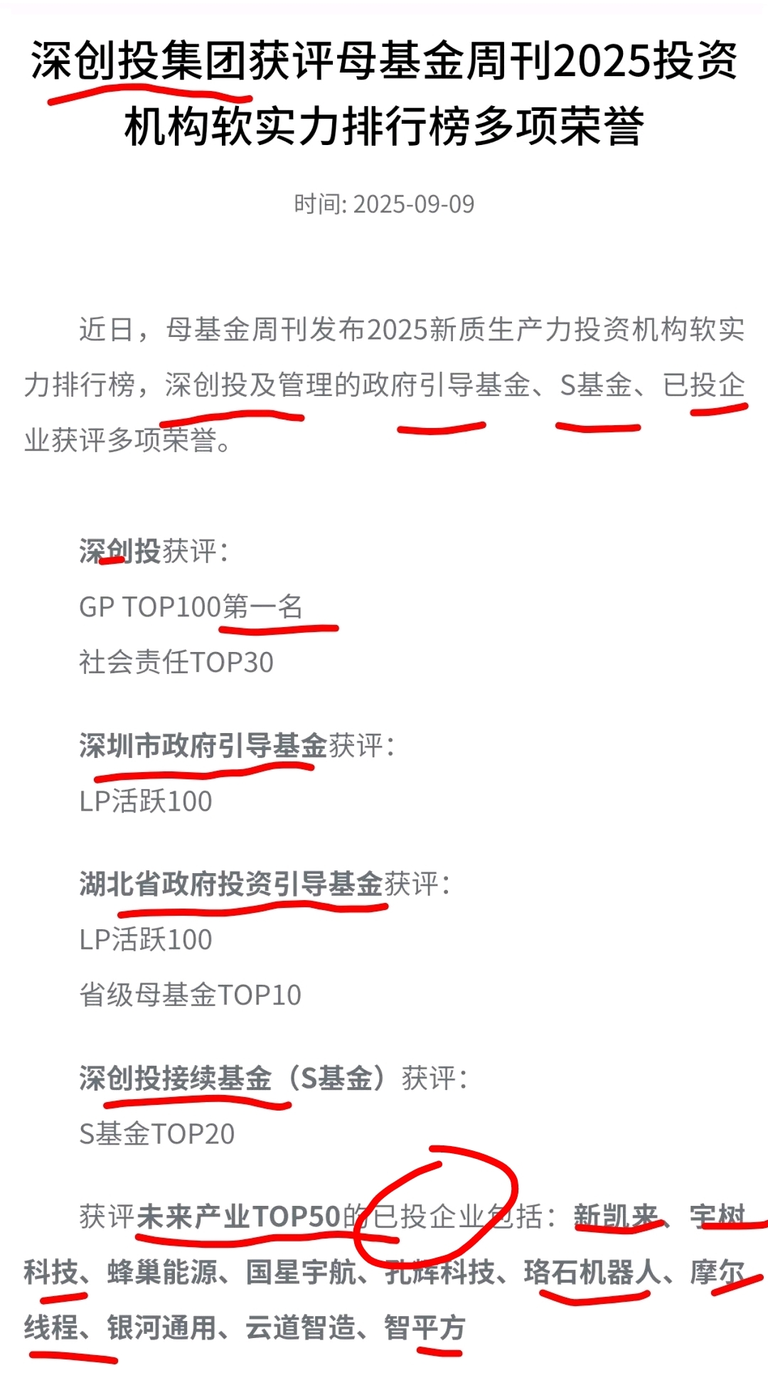 在母基金周刊发布的2025年度评选中,深创投荣膺“GP TOP100第一名”,其投资组合中更有10家企业入选“未来产业TOP50”榜单,彰显了其布局前沿科技的深度与广度。这批企业是深创投投资版图中最具战略价值和增长潜力的核心资产。