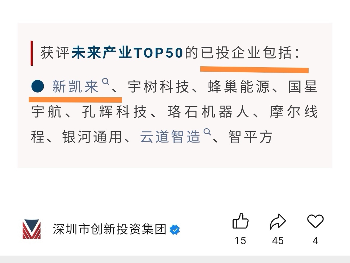 $大众公用(SH600635)$ “新凯来概念”杂毛涨上天,目前查到的资料唯一真正有投资的上市公司大众公用昨天居然没涨!(大众公用持股—深创投—已投企业“新凯来”),大众公用应该算间接投资新凯来。大家动动发财的小手一起把“新凯来概念”添加起来