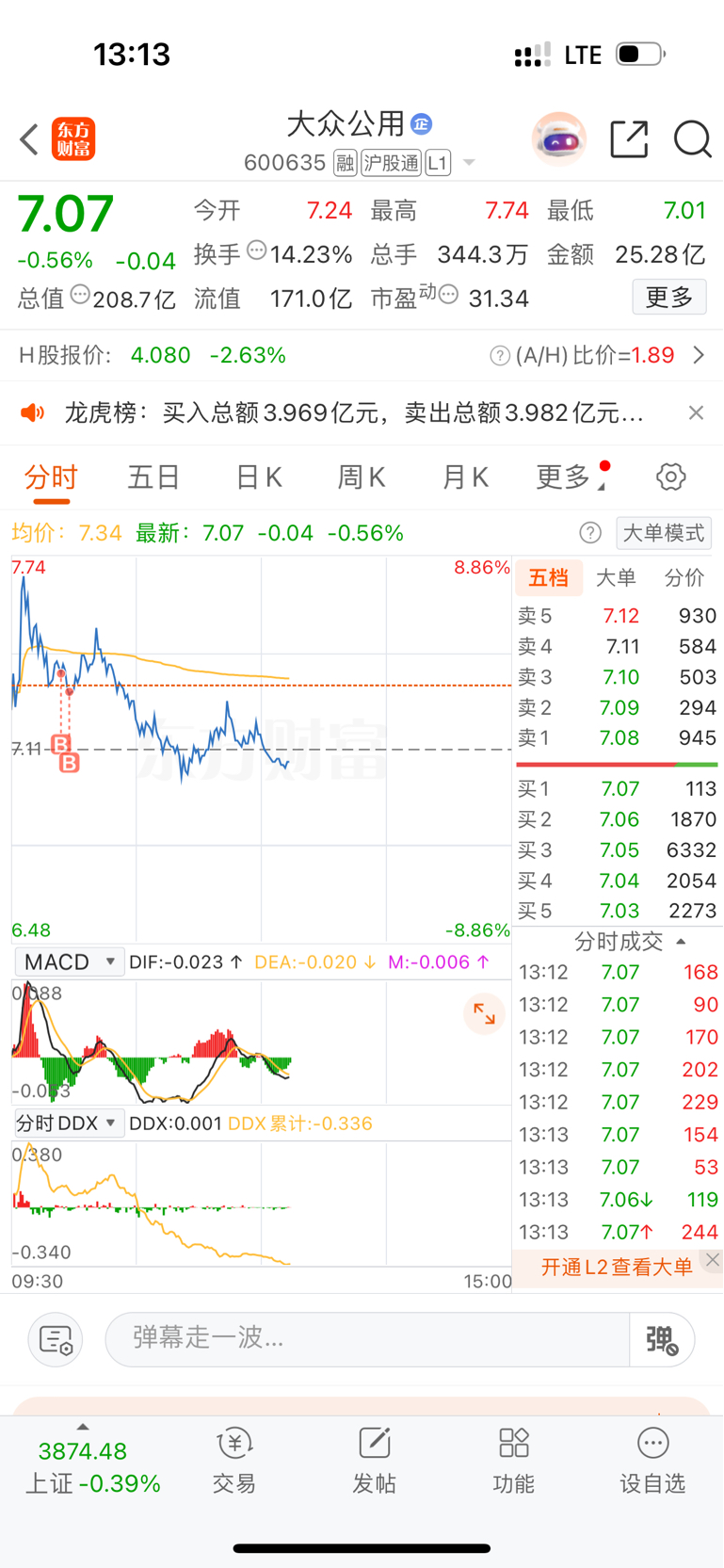 $大众公用(SH600635)$ 坚持不到3分钟 挂山顶上了