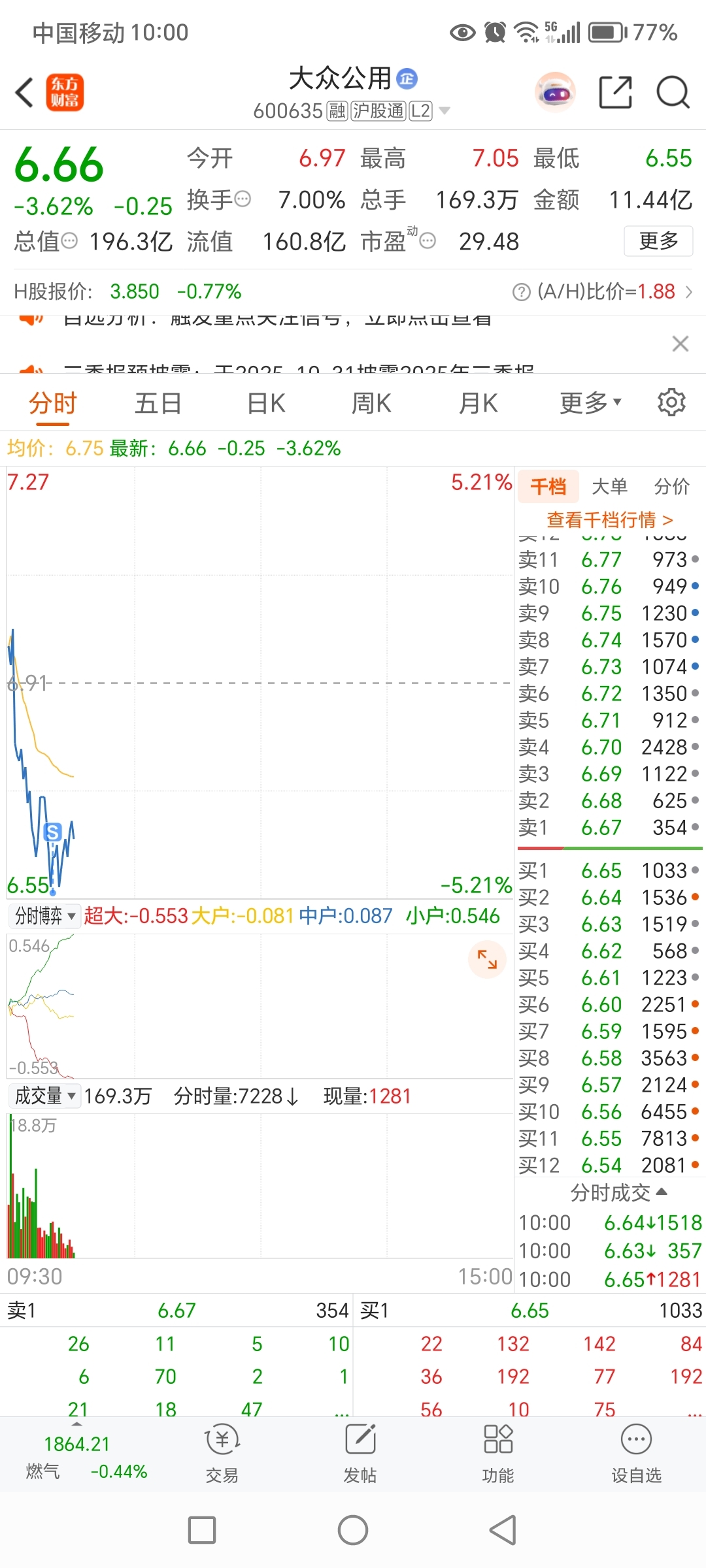 $大众公用(SH600635)$ 6.56全部清仓了,有比我更低的吗?