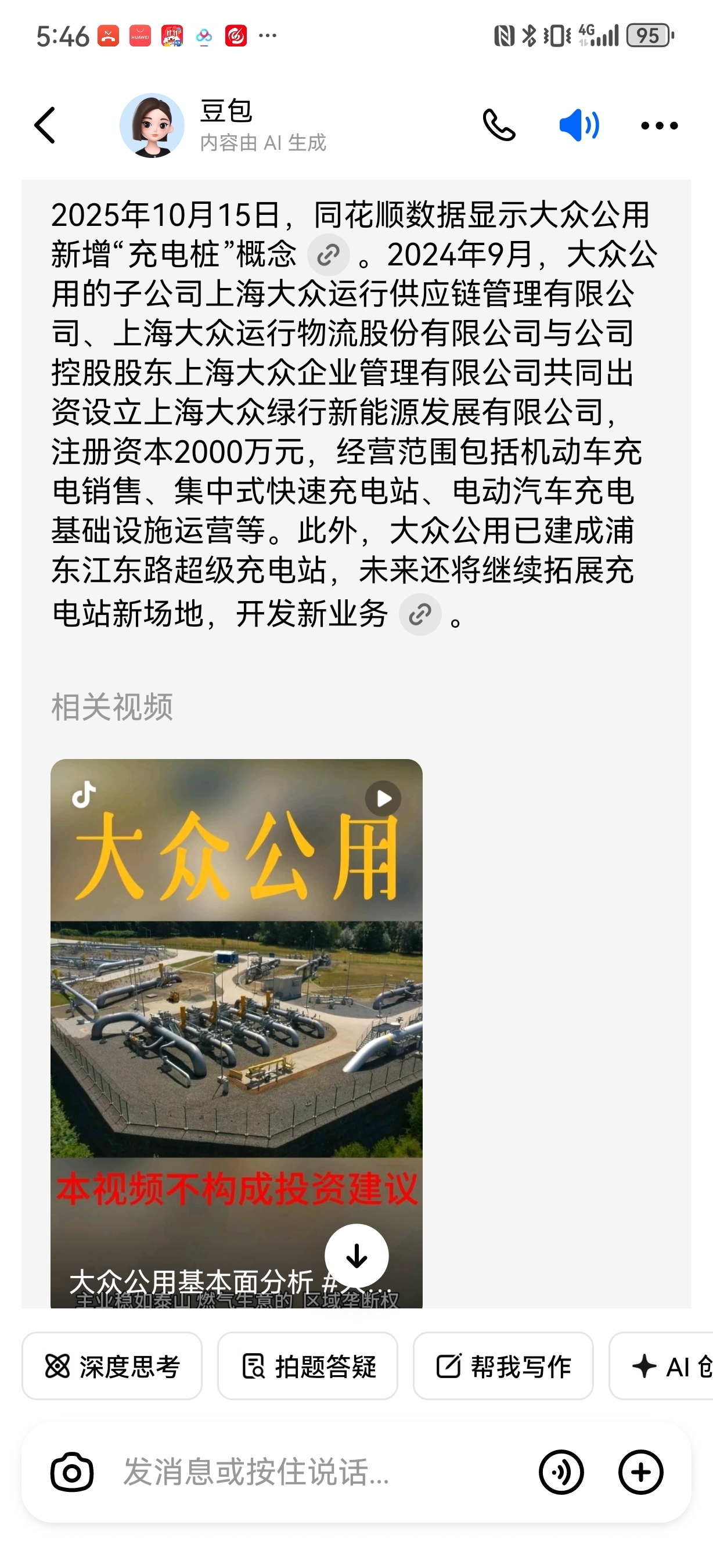 $大众公用(SH600635)$ 分公司有做充电桩业务