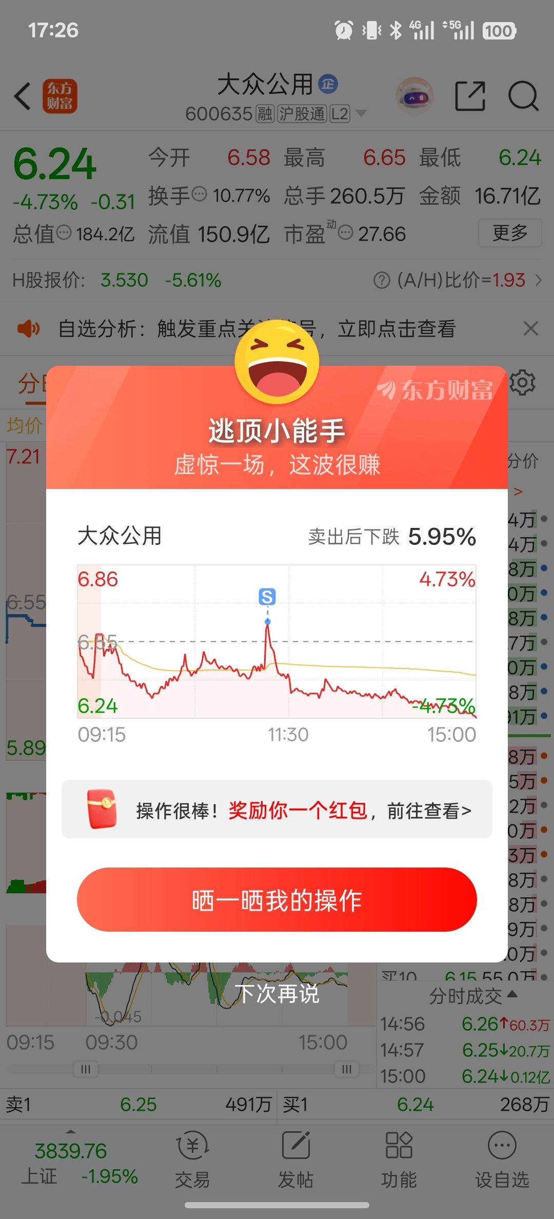 $大众公用(SH600635)$ 走了走了