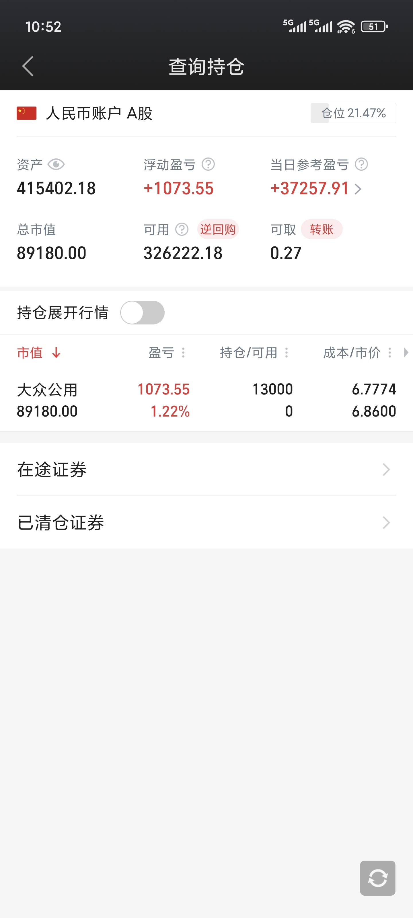 $大众公用(SH600635)$ 不玩了 只拿利润玩 以后再也不全仓了 太煎熬了