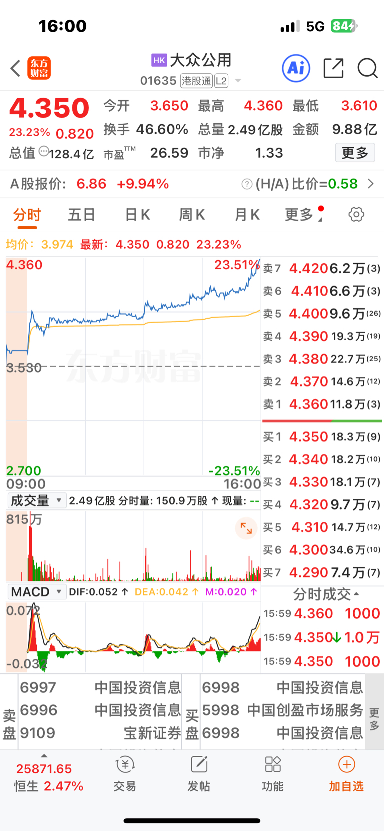 $大众公用(SH600635)$ 港股是真猛