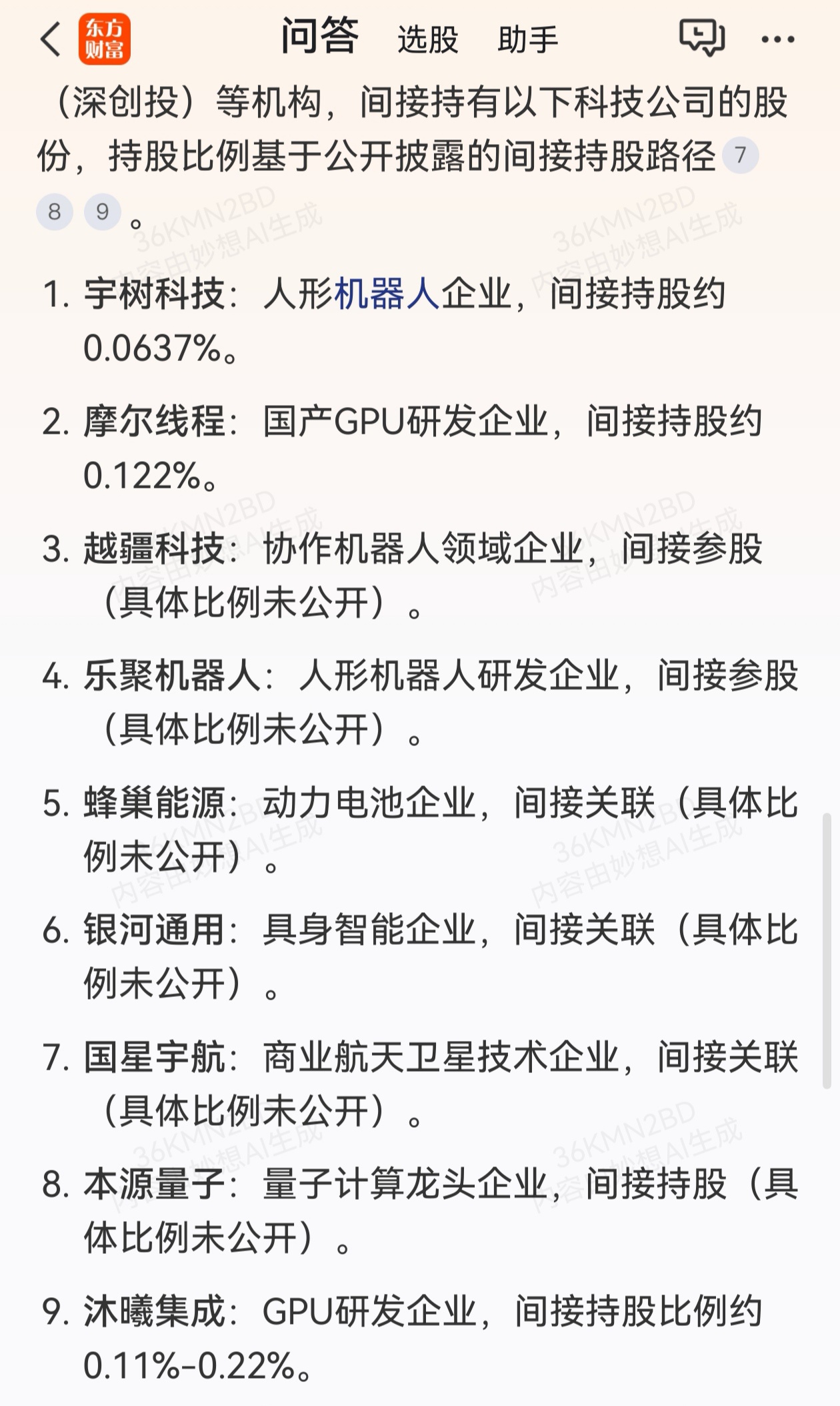 沐㬢+摩尔+宇树+中芯+本源量子+天然气+充电桩,持有深创投10.8%股权,大众