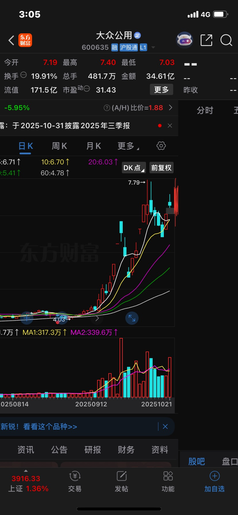 $大众公用(SH600635)$ 大众公用明天大涨卖