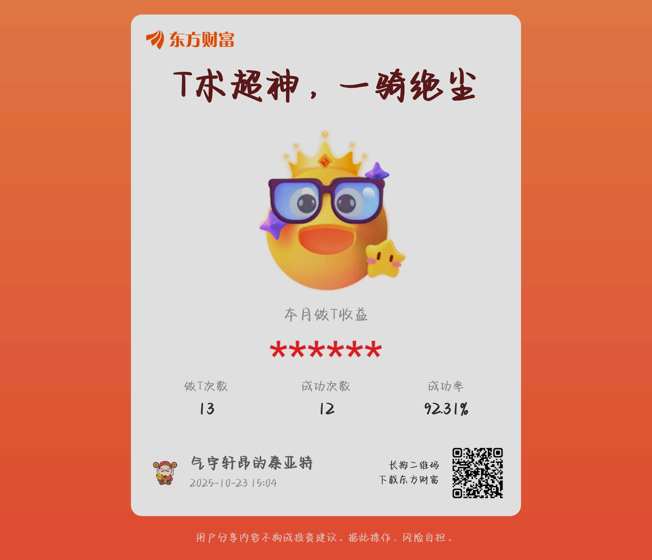温馨提示: 1.根据《证券法》规定,禁止编造、传播虚假信息或者误导性信息,扰乱证券市场;2.用户在本社区发表的所有资料、言论等仅代表个人观点,与本网站立场无关,不对您构成任何投资建议。用户应基于自己的独立判断,自行决定证券投资并承担相应风险。《东方财富社区管理规定》