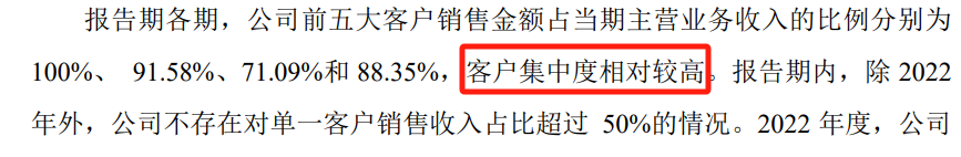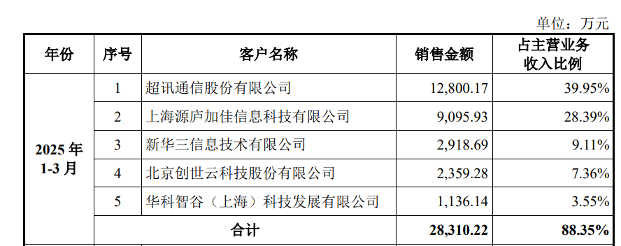沐曦股份的客户集中度过高,成为其业务发展的潜在风险。招股书显示,2023年至2025 年一季度,公司前五大客户销售金额占当期主营业务收入比例分别高达 91.58%、71.09%和 88.35%,远高于行业平均水平。这种高度依赖少数客户的模式,使得公司存在客户流失的巨大风险。一旦主要客户减少订单或转向其他供应商,公司的营收将受到严重冲击。