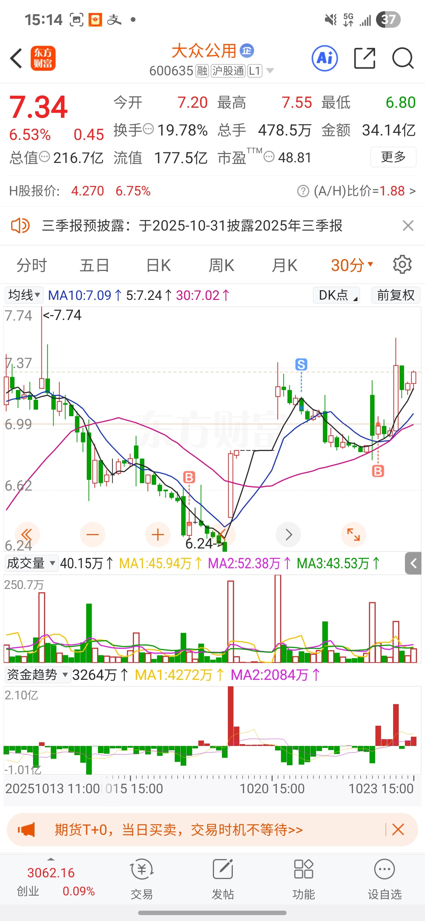 $大众公用(SH600635)$ 回来了支持一下