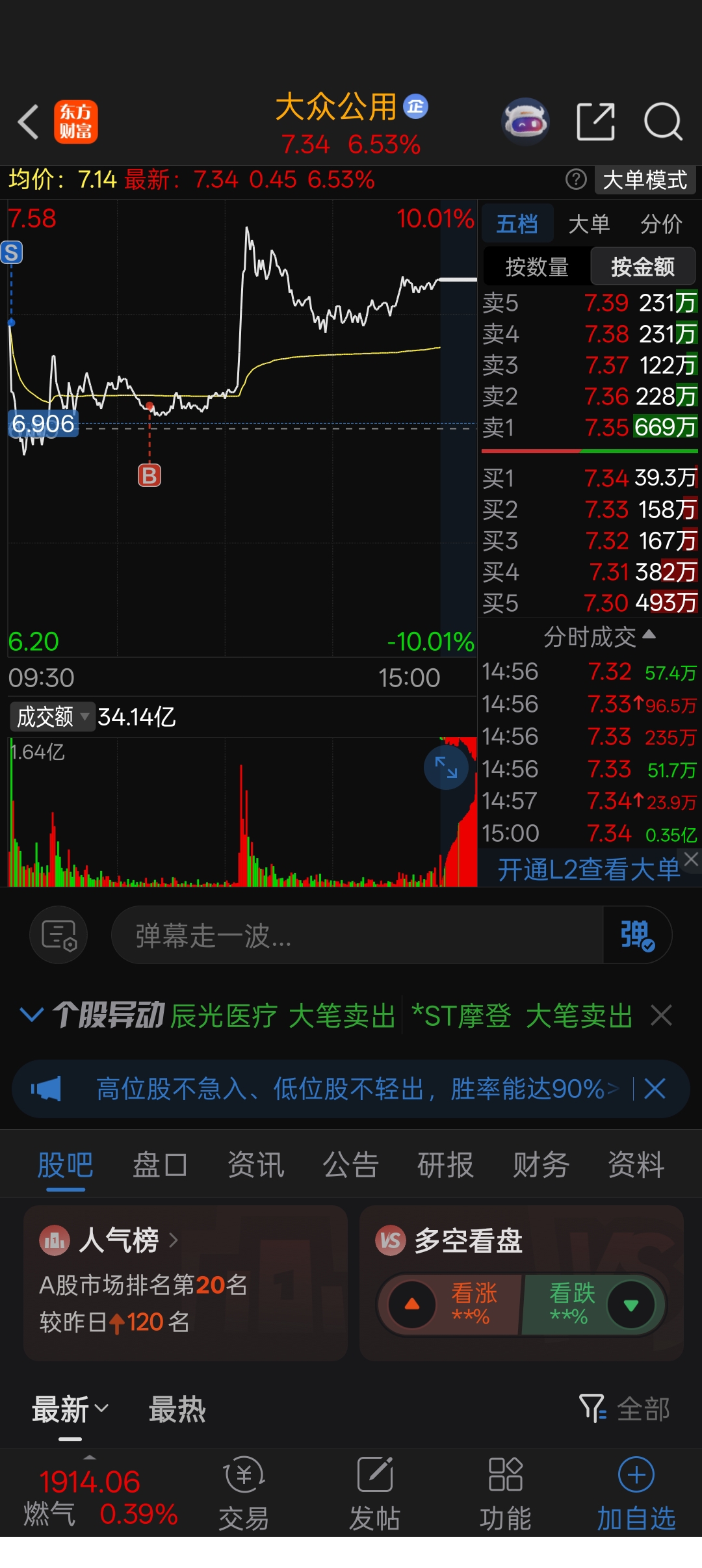$大众公用(SH600635)$ 今天的完美操作,可惜了看不上这货,只用了0.05成仓位