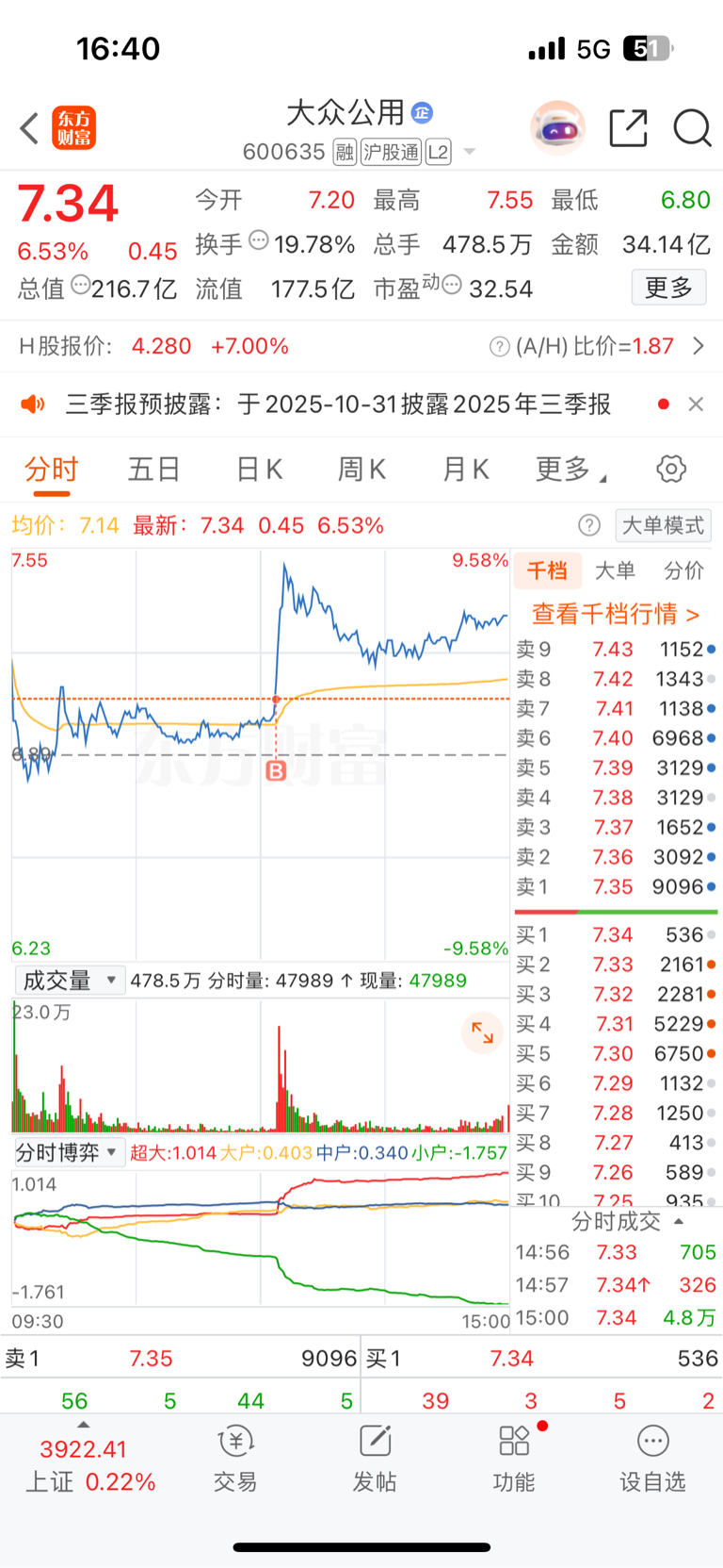 $大众公用(SH600635)$ KDJ金叉了怎么说,能来第三波嘛,虽然只有部分成交,但是没关系,依旧小兴奋,打爆空头小黑黑