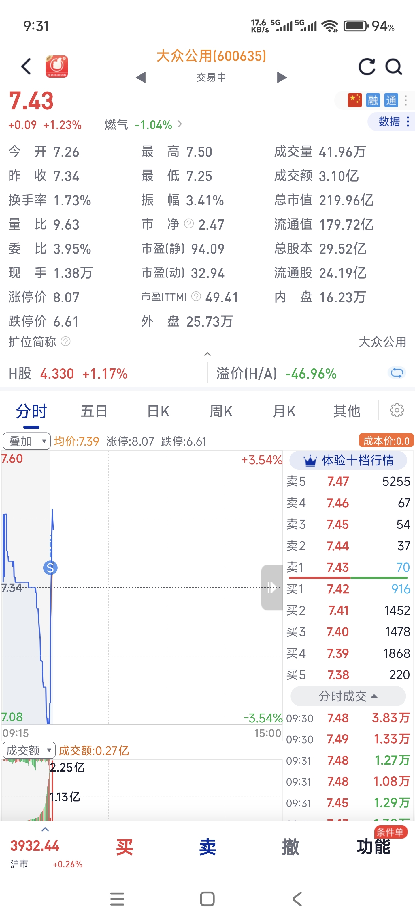 $大众公用(SH600635)$ 先跑了……小心脏受不了。