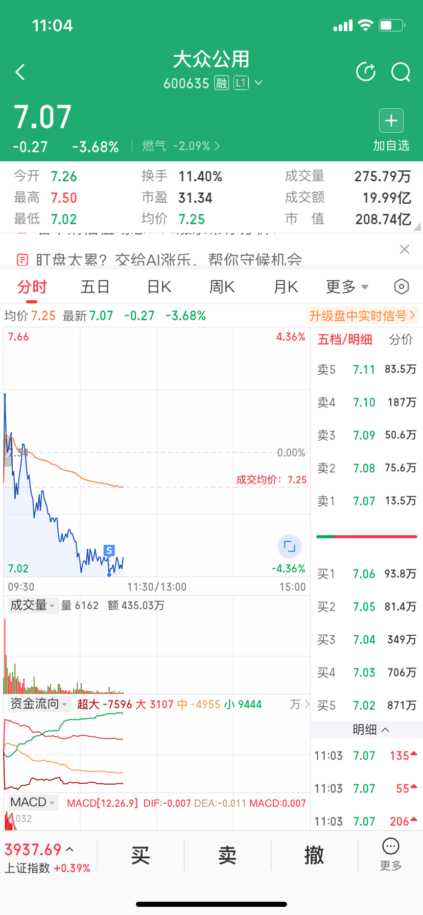 $大众公用(SH600635)$ 卖在最低点,保本,太贪了