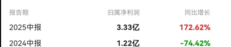 2025半年报3.33亿元(只半年,都比过去四年里任何一年的“全年”还多。