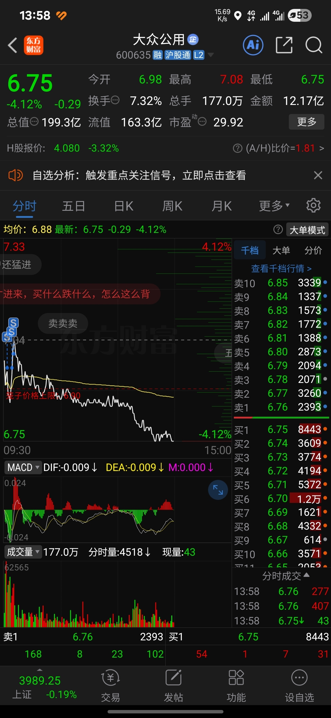 $大众公用(SH600635)$ 确实扛不住了 没亏钱直接跑了