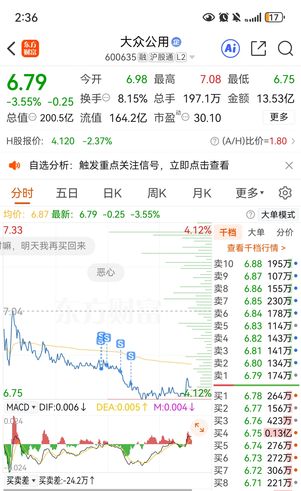 $大众公用(SH600635)$ 已走。看着托单一个个被吃掉。