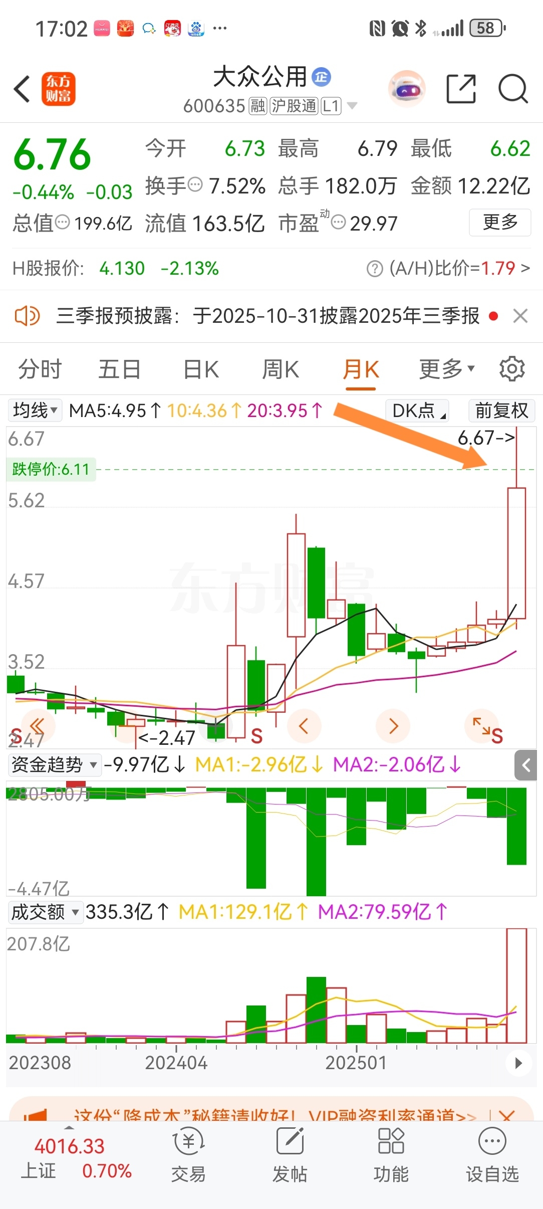 $大众公用(SH600635)$ 还要跌,长上去太多了会到5.6左右