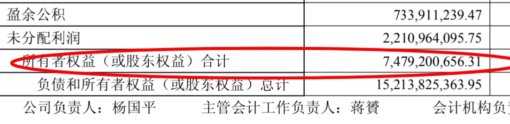 74.79亿元所有者权益(或股东权益)合计 7,479,200,656.31