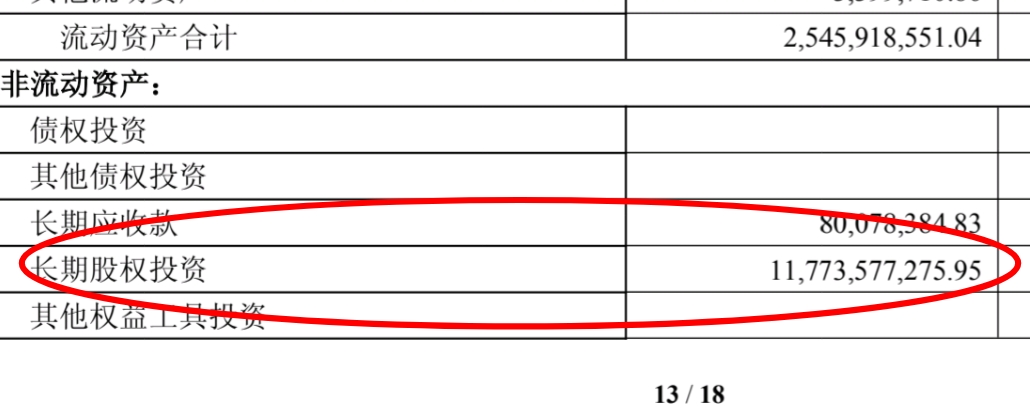 117.7亿元长期股权投资 11,773,577,275.95