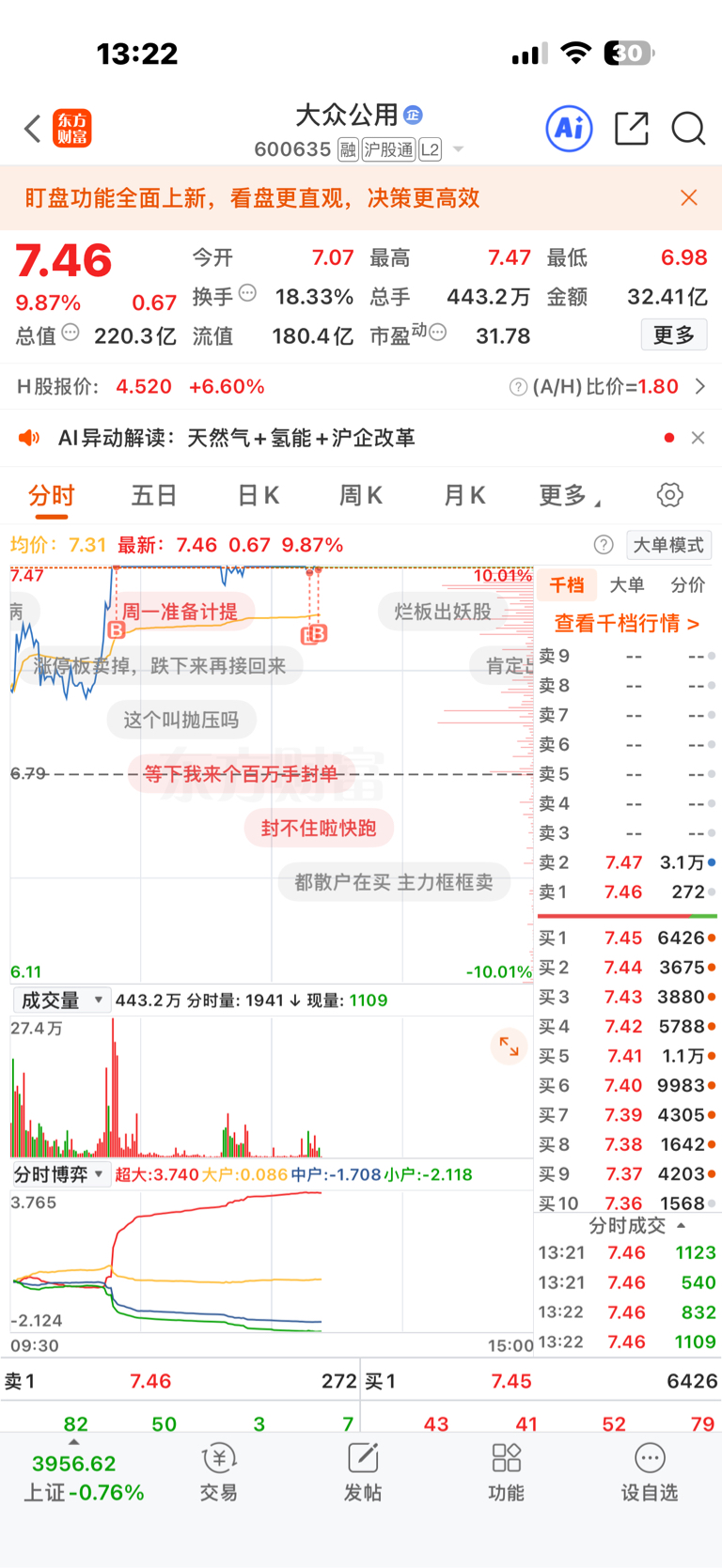 $大众公用(SH600635)$ 好了 满仓了
