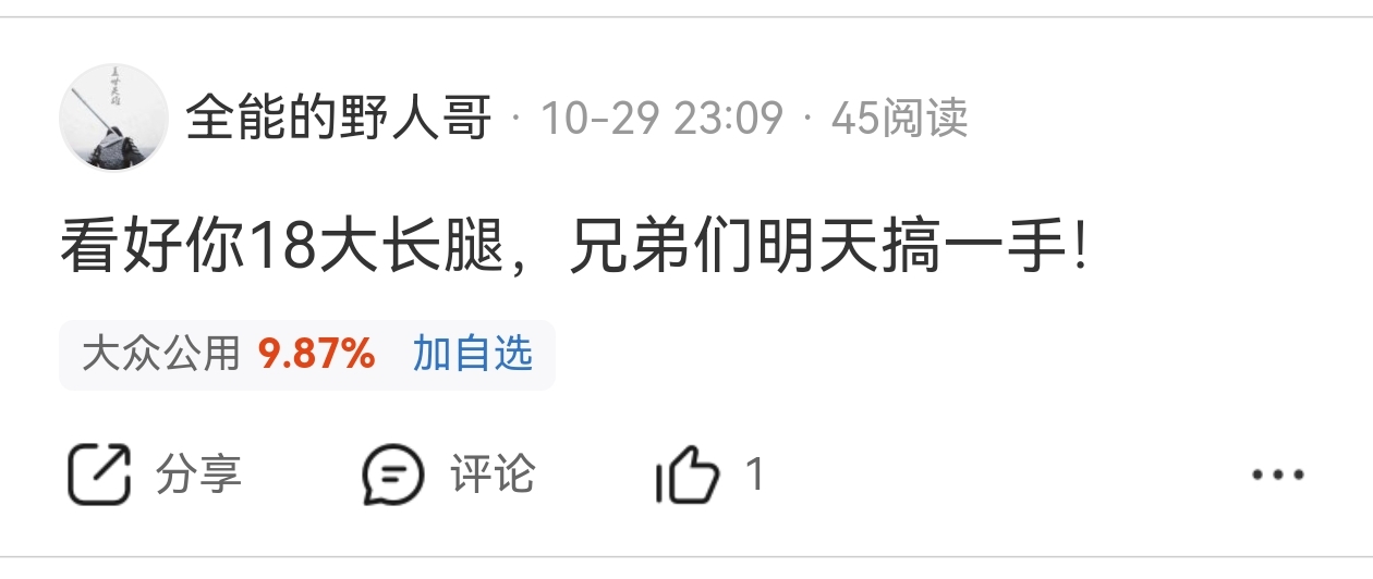 温馨提示: 1.根据《证券法》规定,禁止编造、传播虚假信息或者误导性信息,扰乱证券市场;2.用户在本社区发表的所有资料、言论等仅代表个人观点,与本网站立场无关,不对您构成任何投资建议。用户应基于自己的独立判断,自行决定证券投资并承担相应风险。《东方财富社区管理规定》