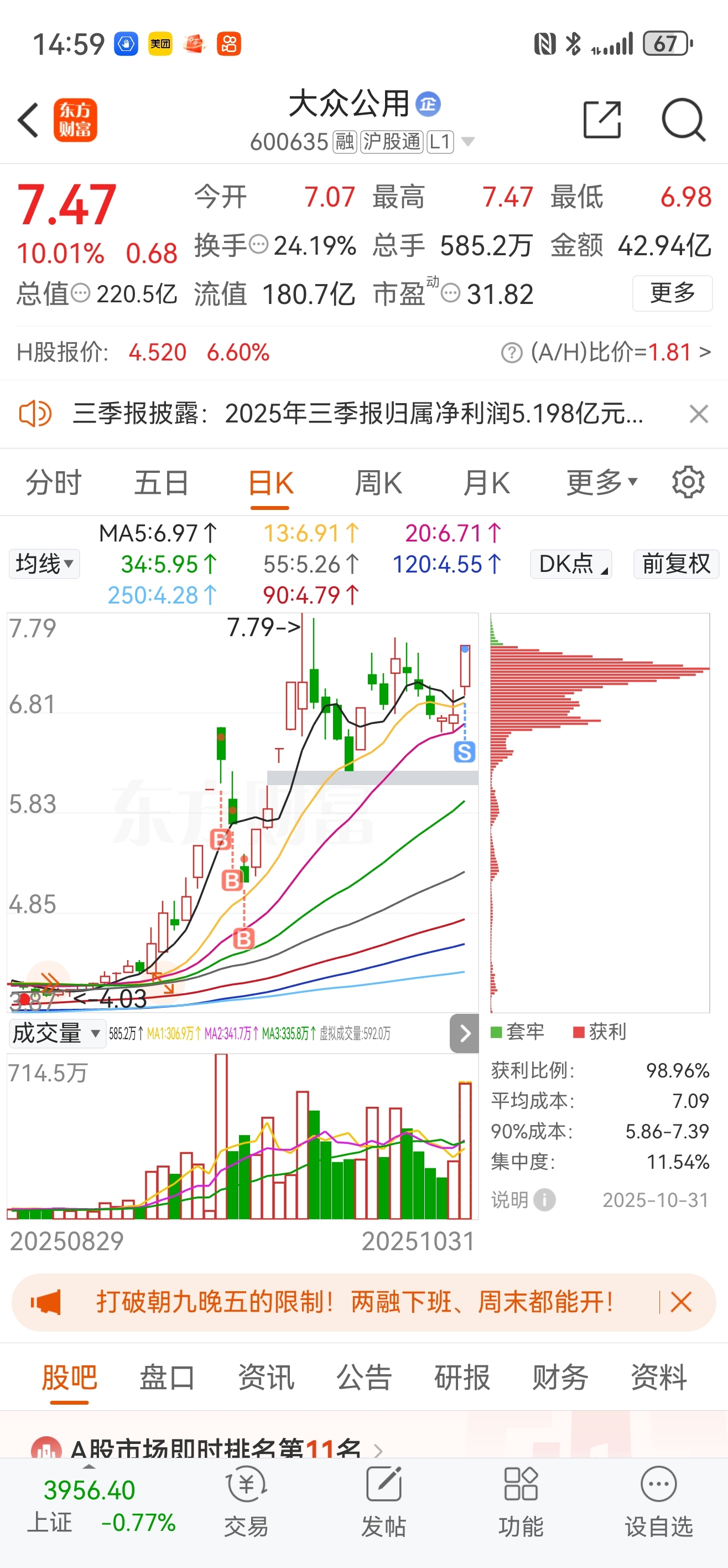 $大众公用(SH600635)$ 封了也改变不了周一地板,因为其他摩尔相关股并没有跟。