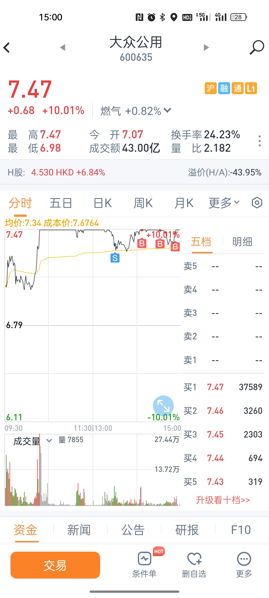$大众公用(SH600635)$ 洗的干干净净,还有三个板。看情况不对赶紧接回加仓