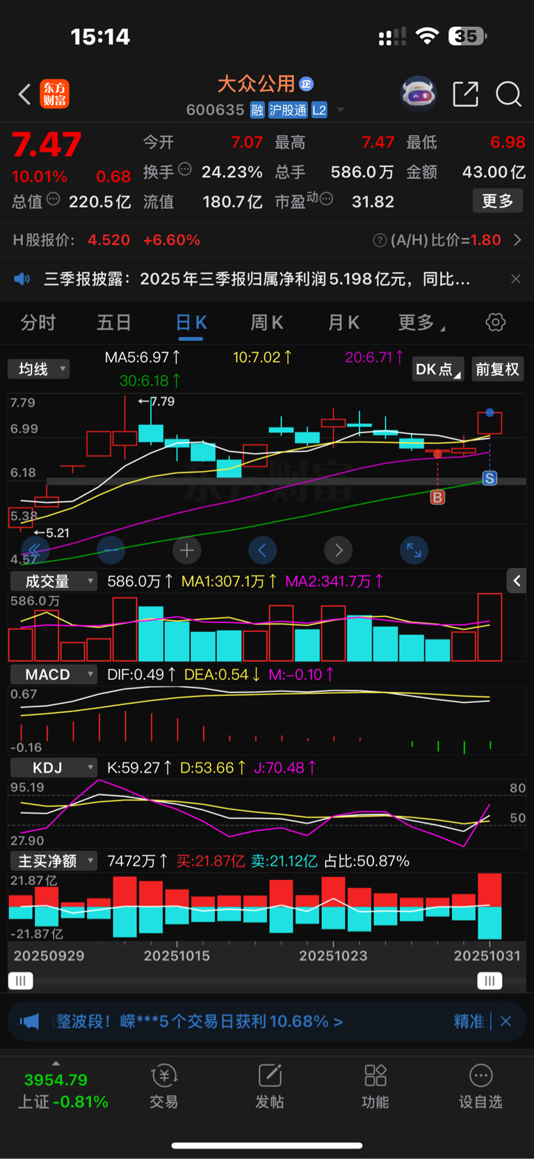 $大众公用(SH600635)$ #实盘记录# 给吓跑了,留下的发财。
