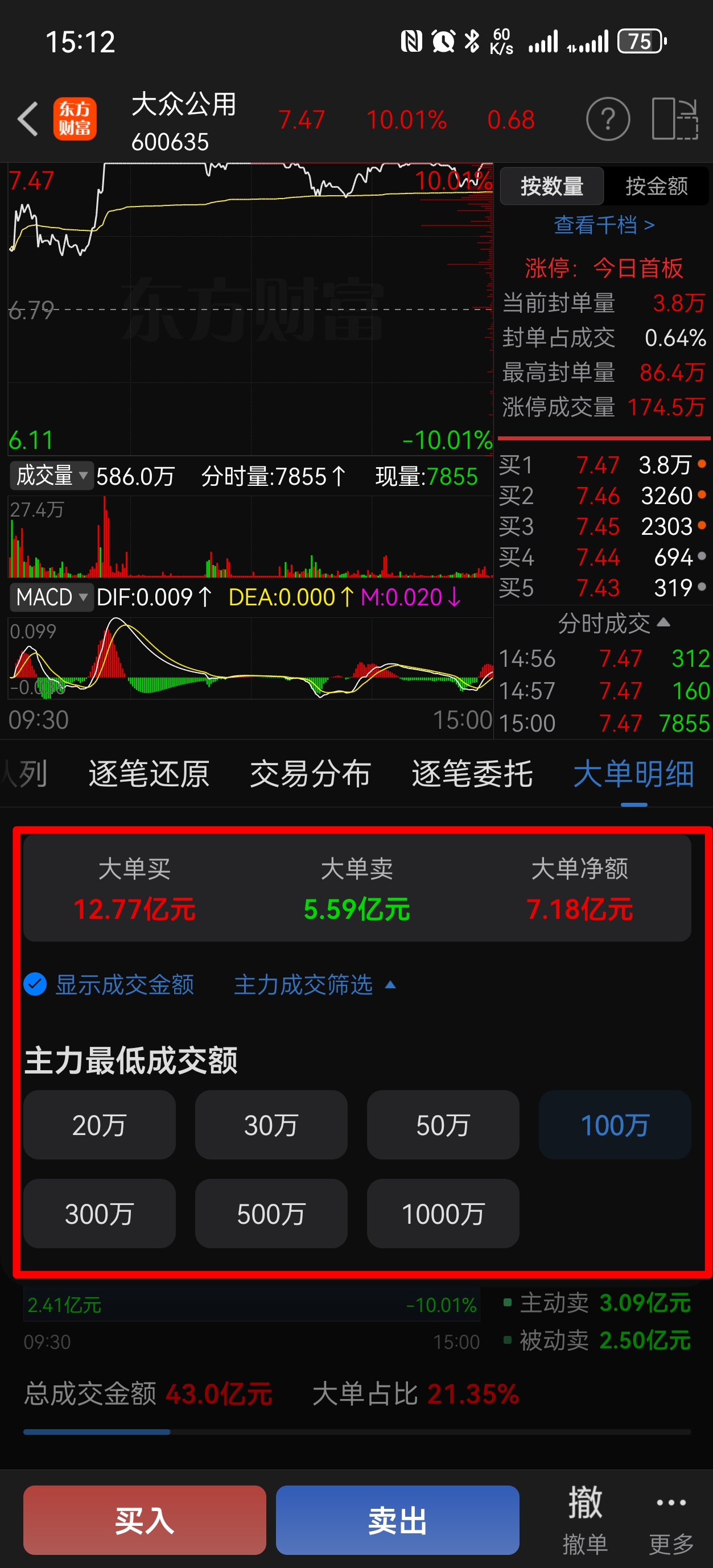 $大众公用(SH600635)$ 今日百万以上大单净流入七个亿,洗的很干净