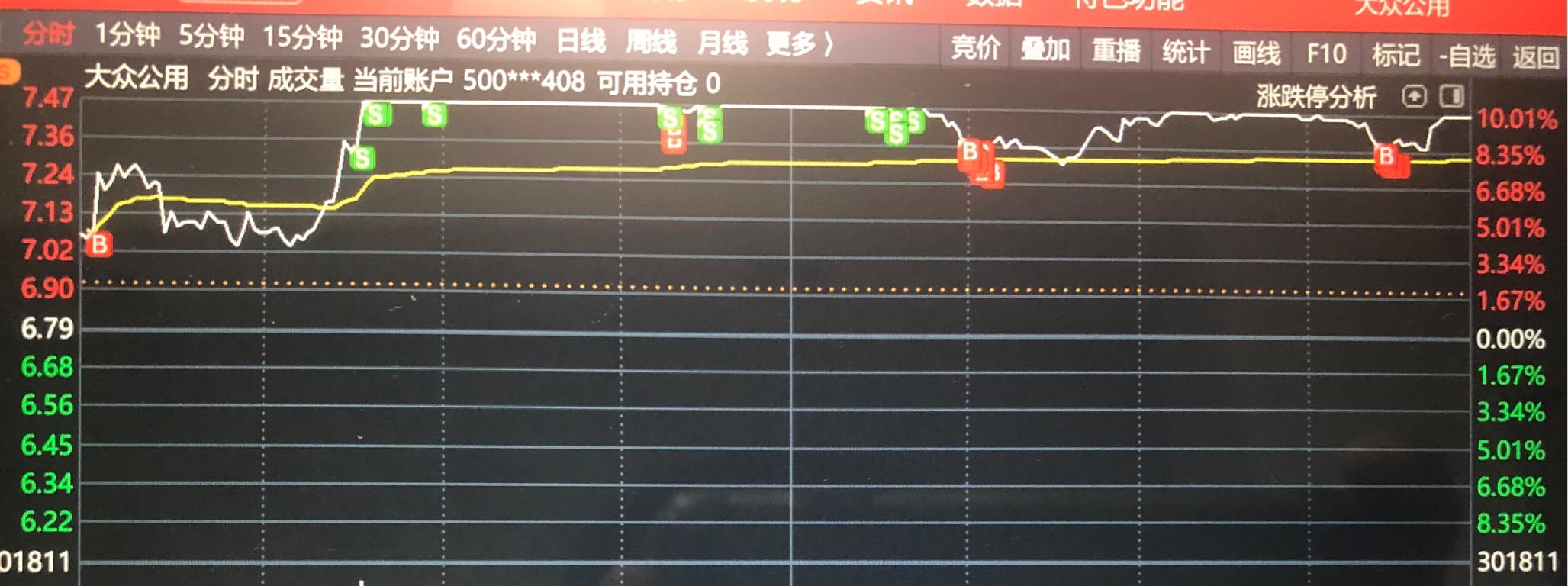 $大众公用(SH600635)$ 今天操作的有点辛苦,好在尾盘收涨停,有望迎来一波独立行情,下周低开的话绝对是再度增仓的机会,如果高开的话可适当减仓,反正敢低开就买,敢高开就卖,从从容容,游刃有余