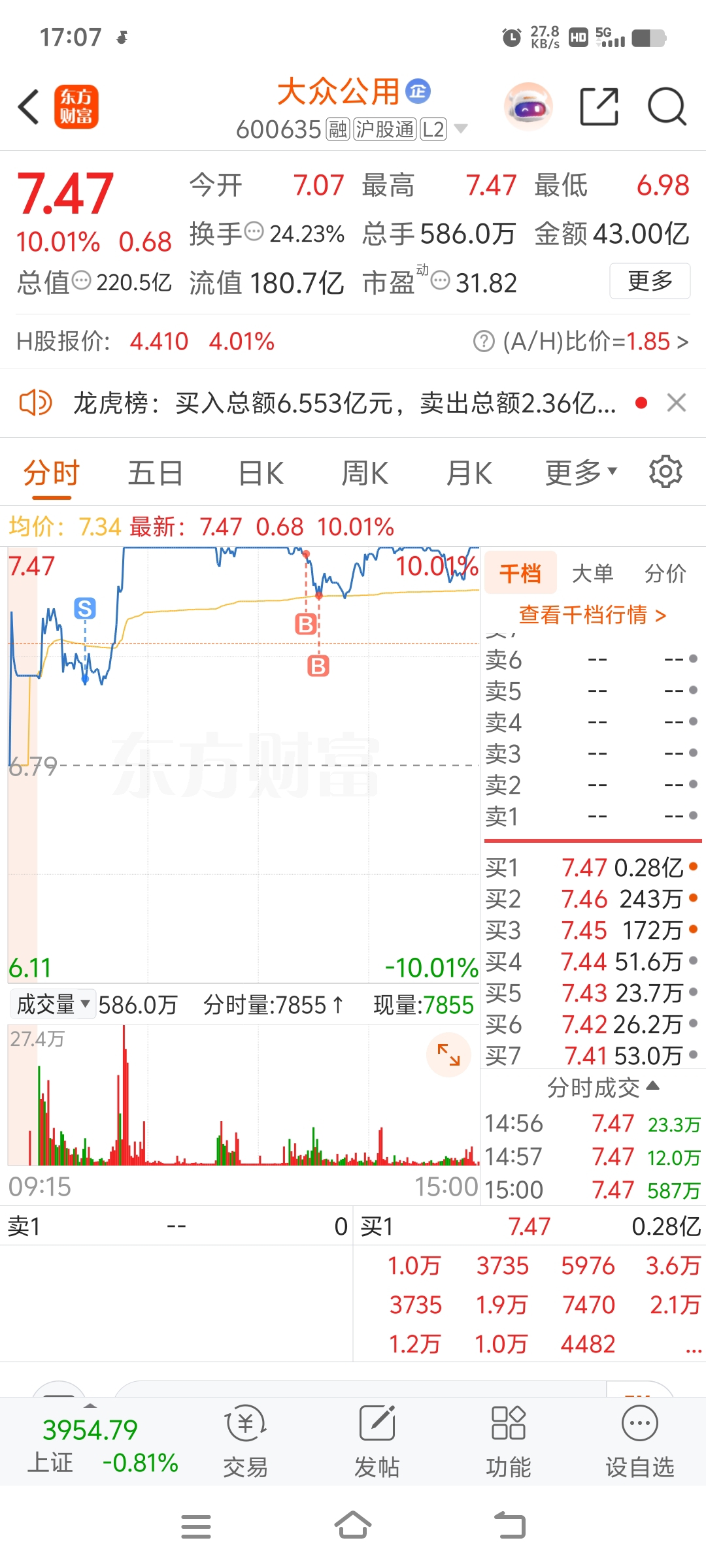 $大众公用(SH600635)$ 早上出了,下午又接回来了!真是刺激的一下午!#强势机会#