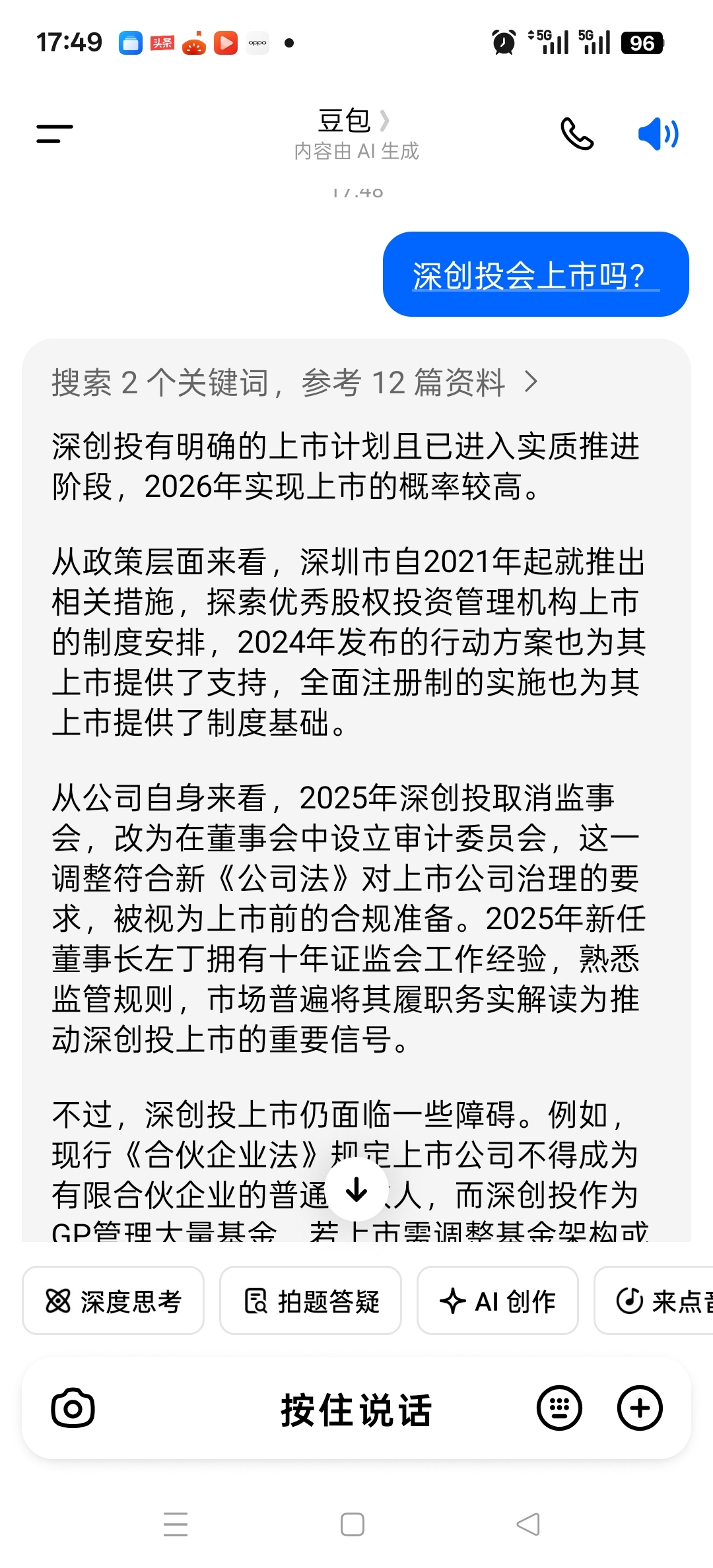 深创投要上市吗?有马路消息出来了。大众公用有多少个板啊?可惜只买了4分之一