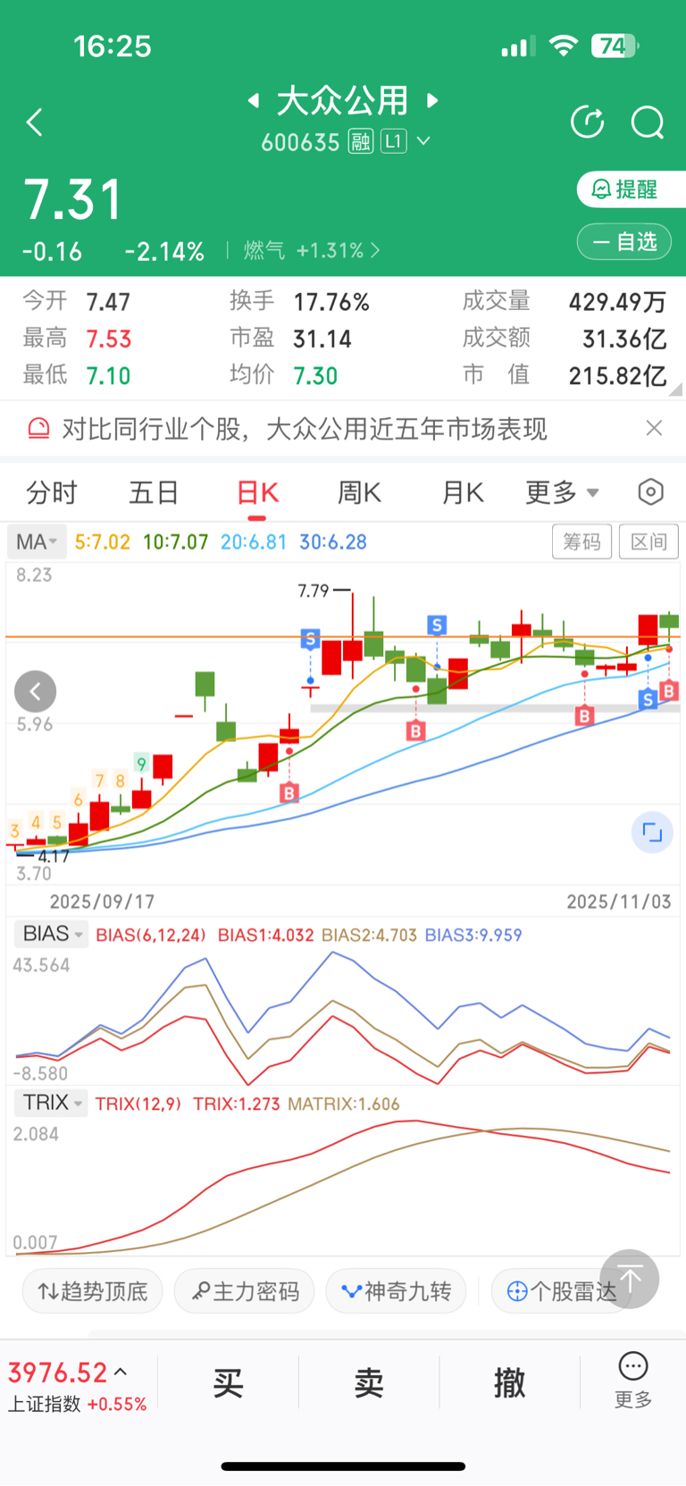 $大众公用(SH600635)$ 周五涨停卖掉,今天7.15接回来 香喷喷