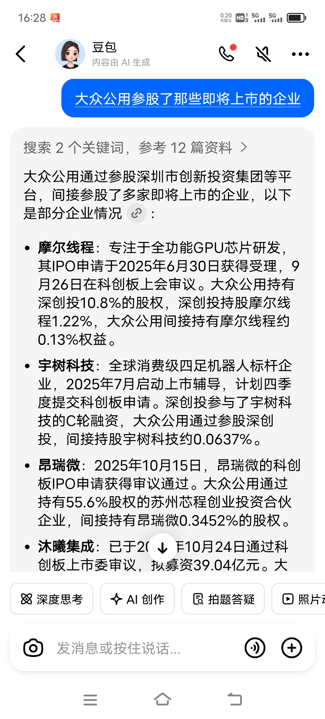 大众公用参股了这么多风口的牛企业,可见企业高瞻远瞩,明天是否开启连涨停板模式?敬