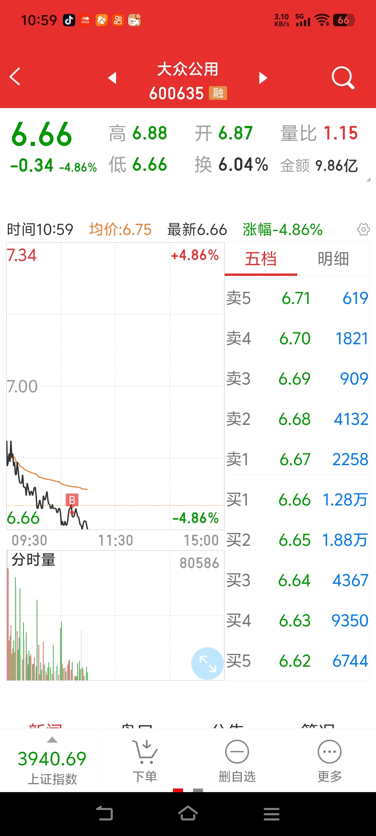 首次买入大众公用,希望下午涨停吃肉
