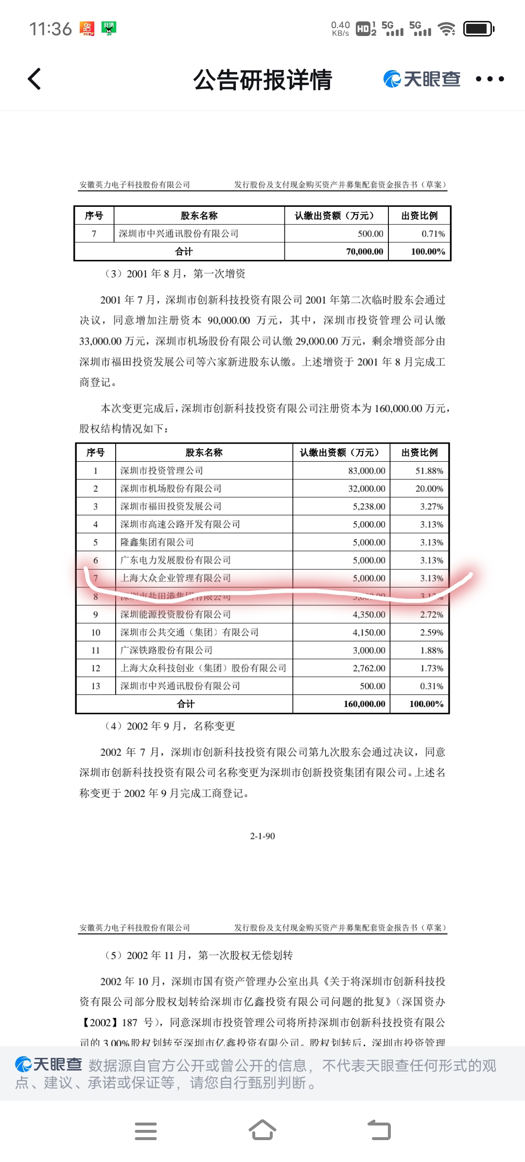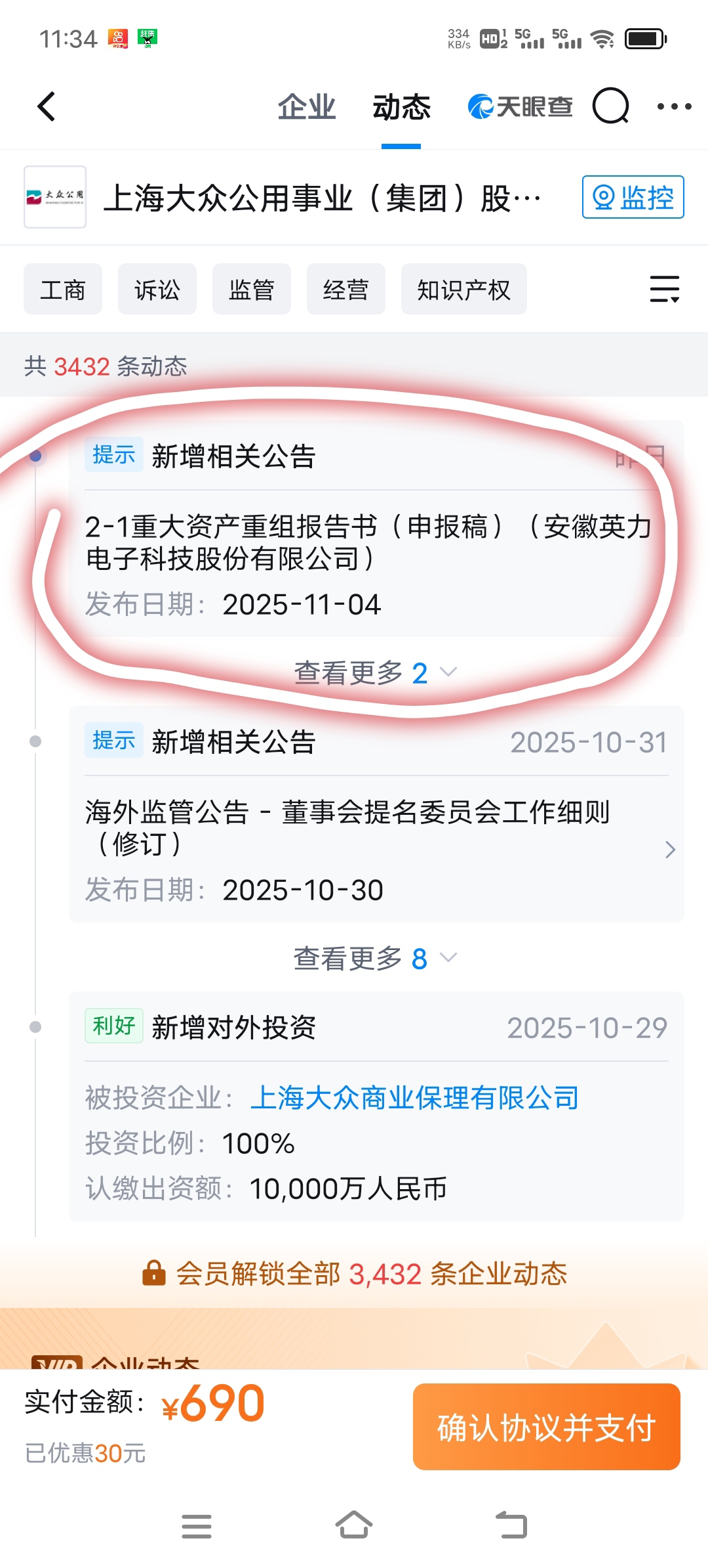 天眼查查到11月4日大众公用参与了2-1重大资产重组,出资5000万,出资比例3