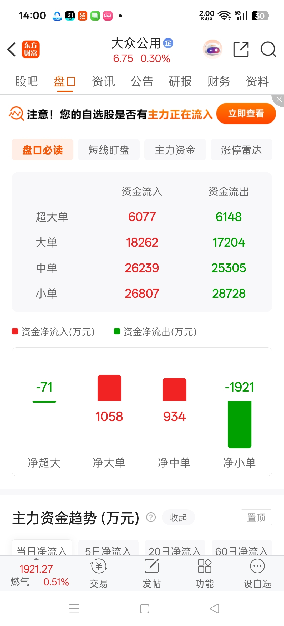 $大众公用(SH600635)$ 小单流出,就很奇怪,哈哈哈哈