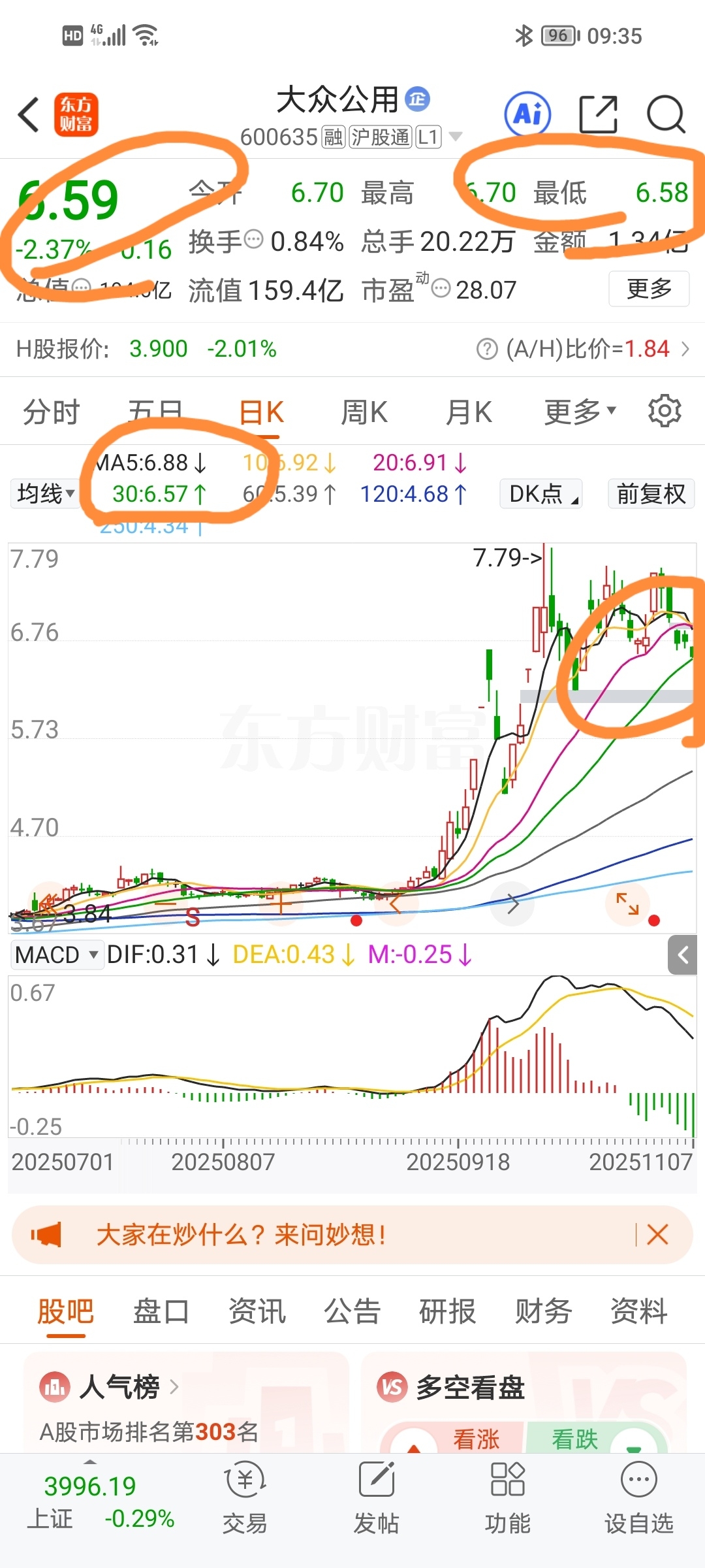 $大众公用(SH600635)$ 30日线6.57,应该是较好的买入位置