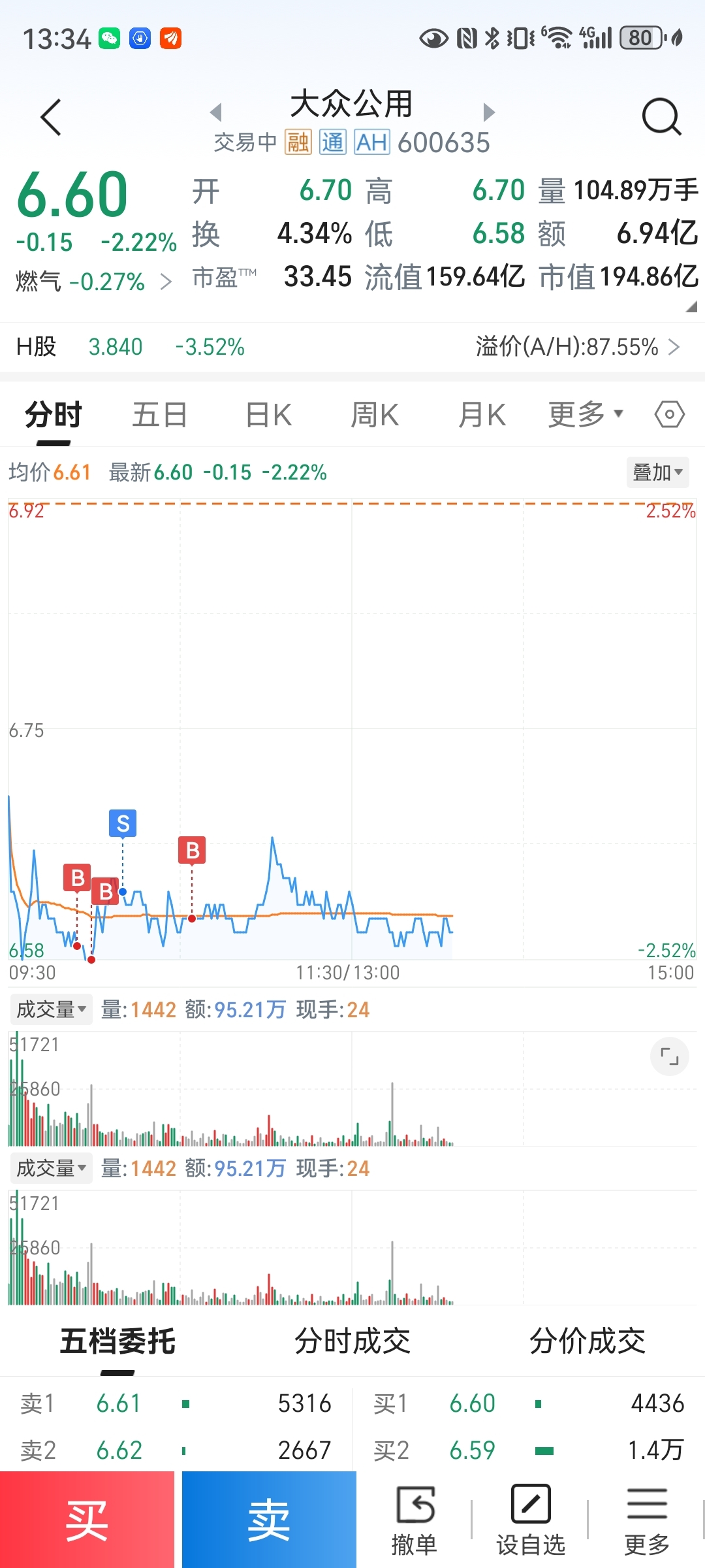 $大众公用(SH600635)$ 排高一分没T出去,单钓这个现在只能这样了,6分7分都行!