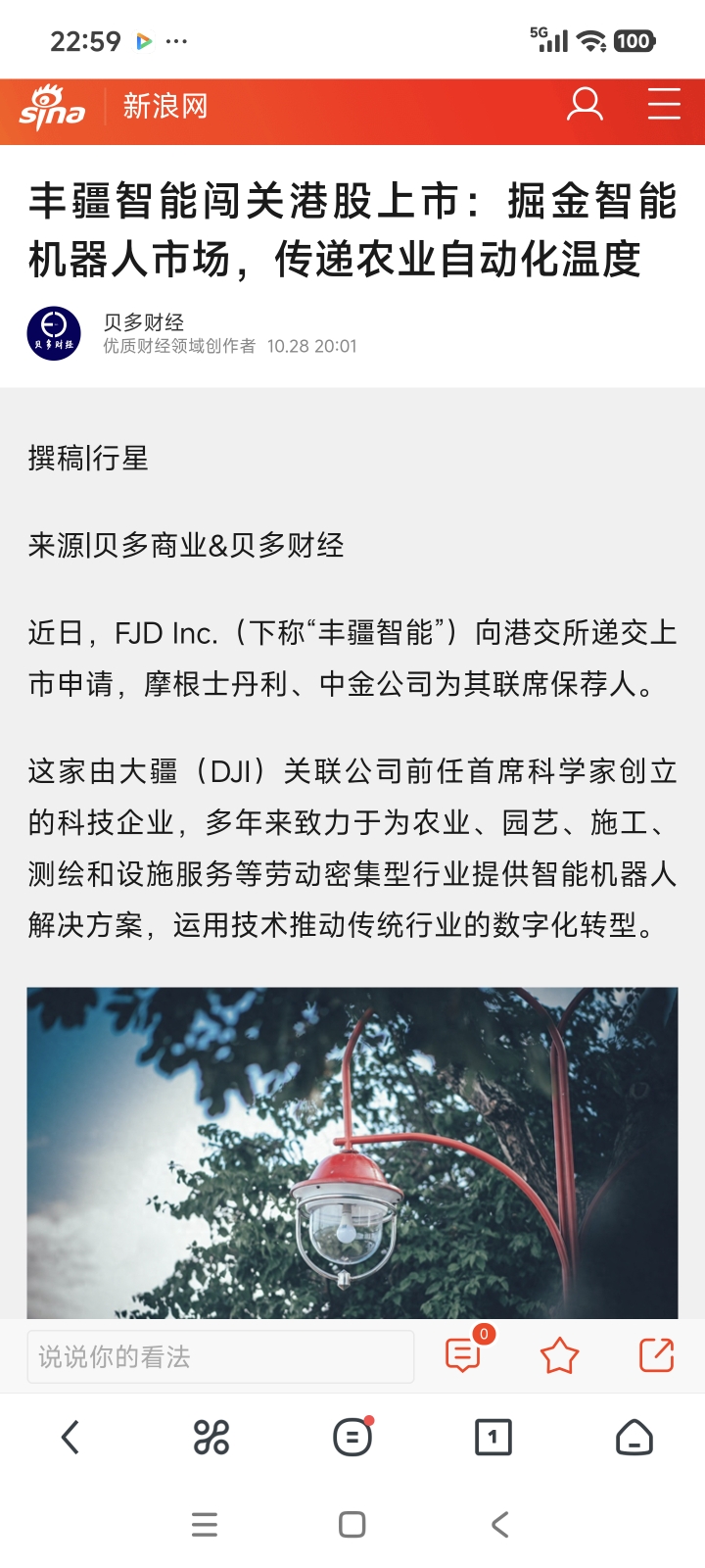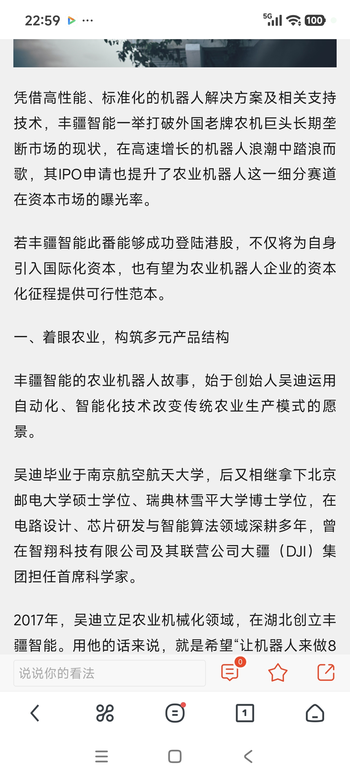 大众公用通过旗下基金直接参股,同时通过深创投间接参股的丰疆智能科技股份有限公司(
