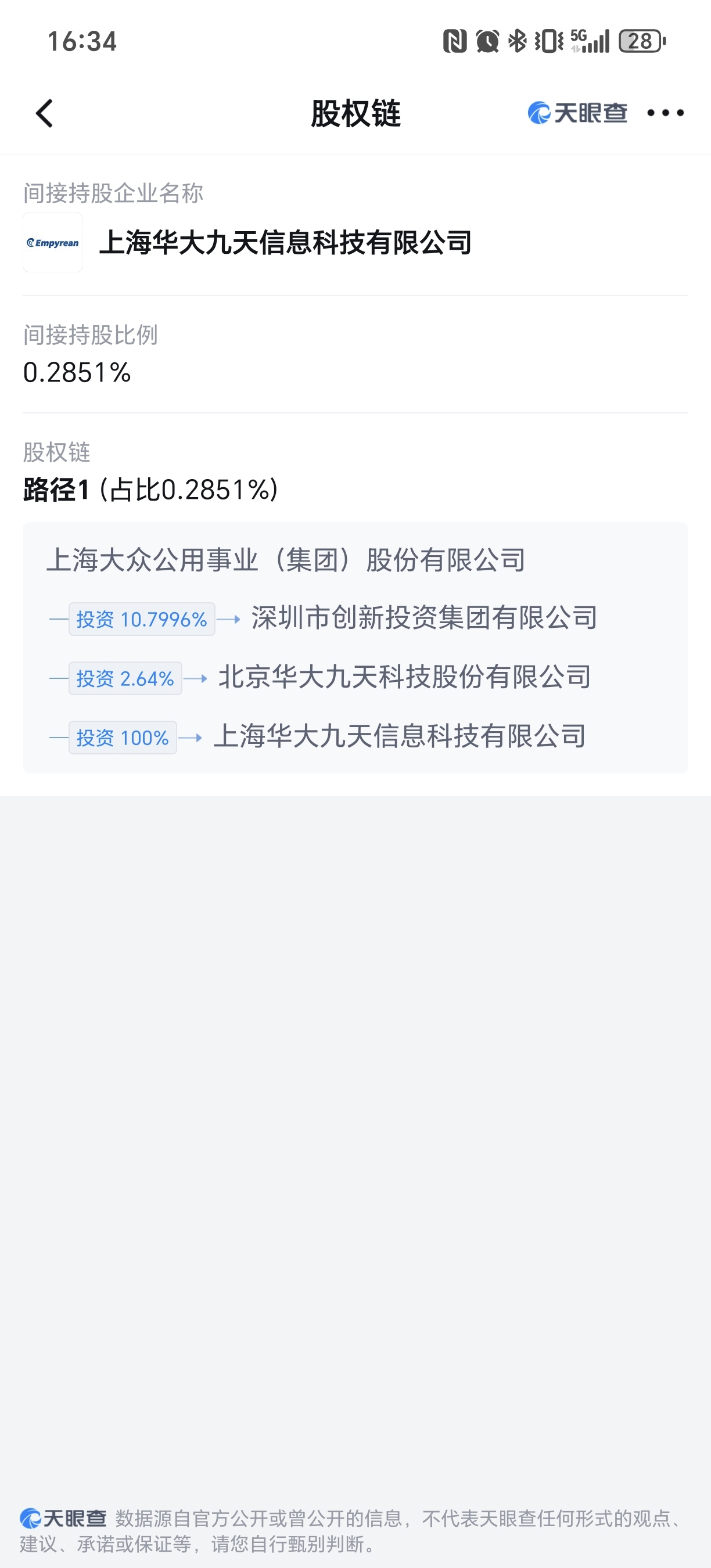$大众公用(SH600635)$ 【金牌令箭14】间接持有华大九天0.2851%,华大九天目前市值620亿,折持股市值1.77亿。