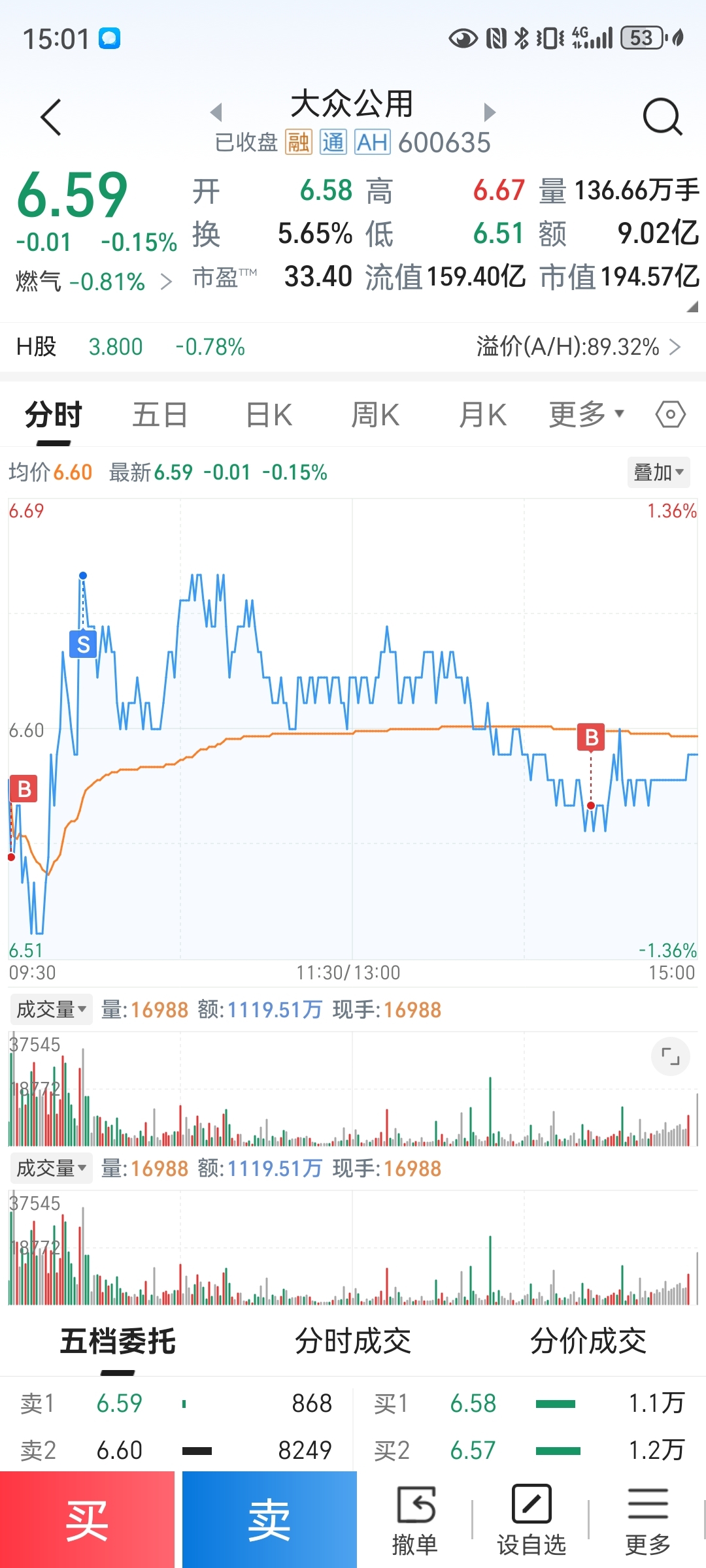 $大众公用(SH600635)$ 今天盈利330元,以前买过的亏损割了以后现在都涨天上去了,以后就买一个票,来回做T。