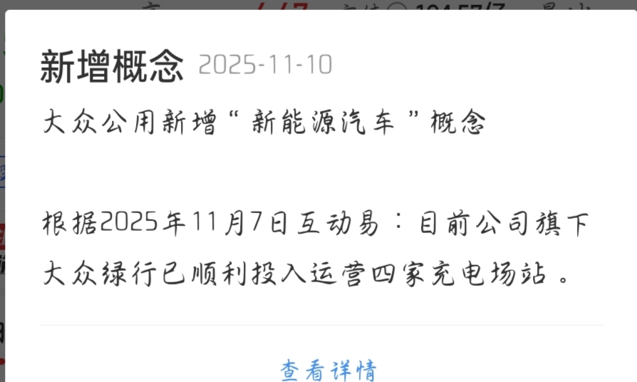 $大众公用(SH600635)$ 新增新能源汽车概念