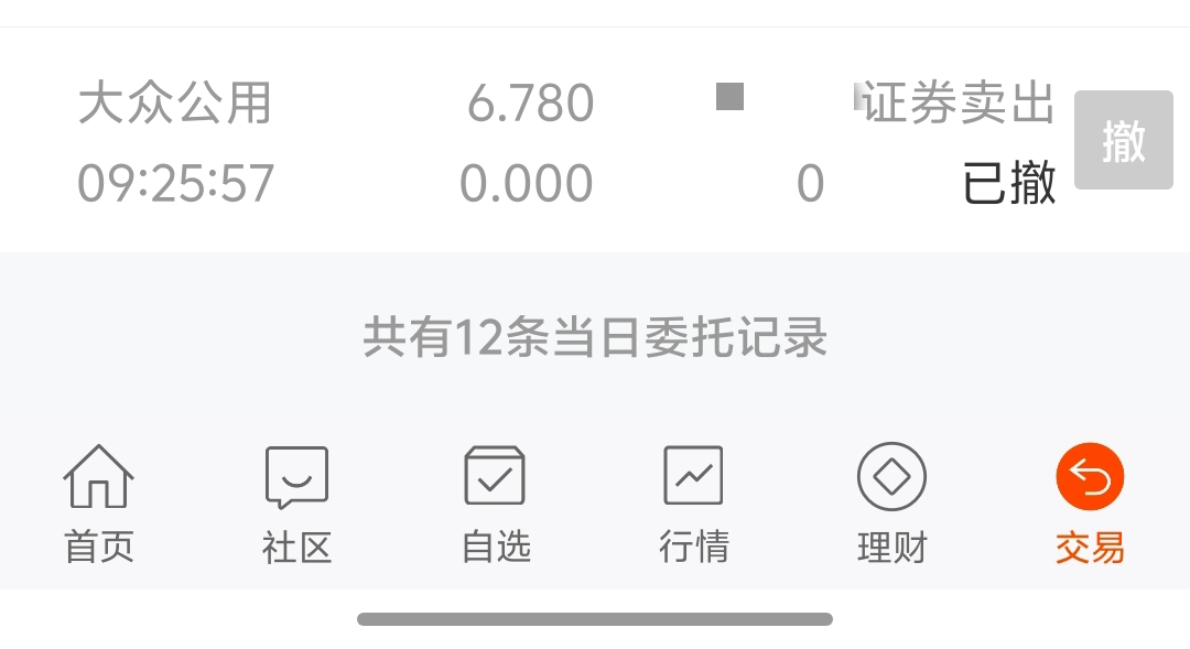 竞价不如意,我就猜到大众公用这德行(开盘即砸),还抱着幻想把卖单撤了。终究是错付了!