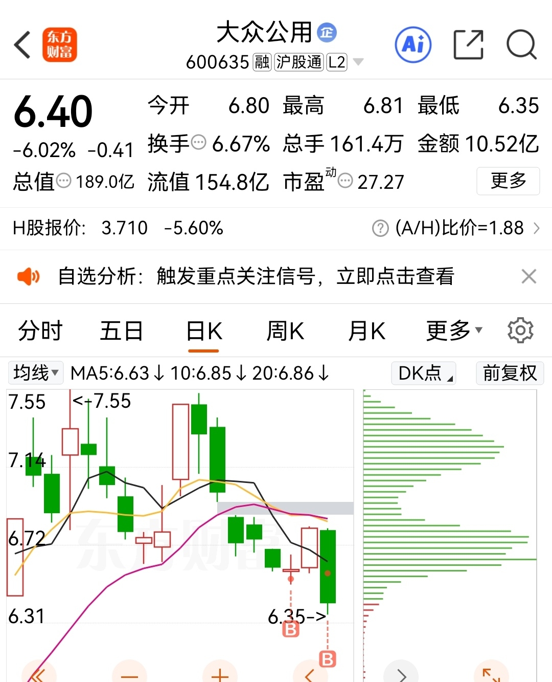 $大众公用(SH600635)$ 你乃乃个腿的,昨天看着拉尾盘就觉不妙,早盘想来个冲高跑的,直线a下来了,毕竟昨天燃气出了两个首板,今天燃气肯定不错,在他的带动下你是一点表现没有啊!!机构出货,量化助力,让你搞得今天盈利剩不到一个点了!