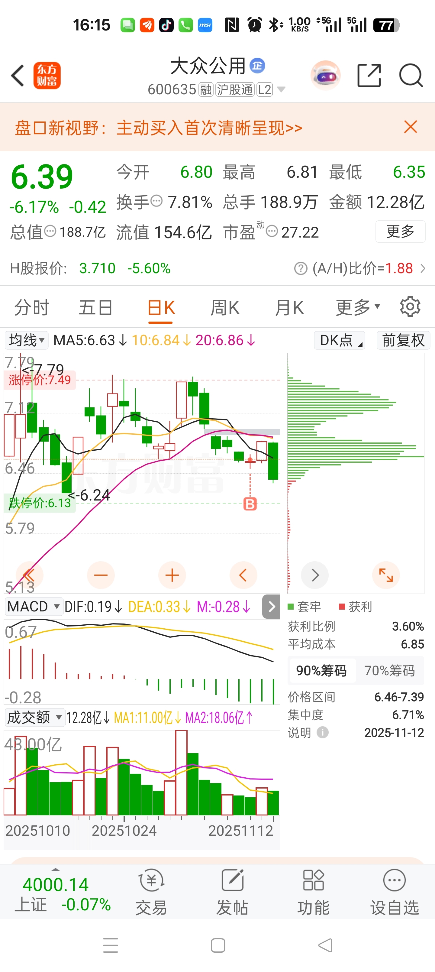 $大众公用(SH600635)$ 去,明天割了,这股害人
