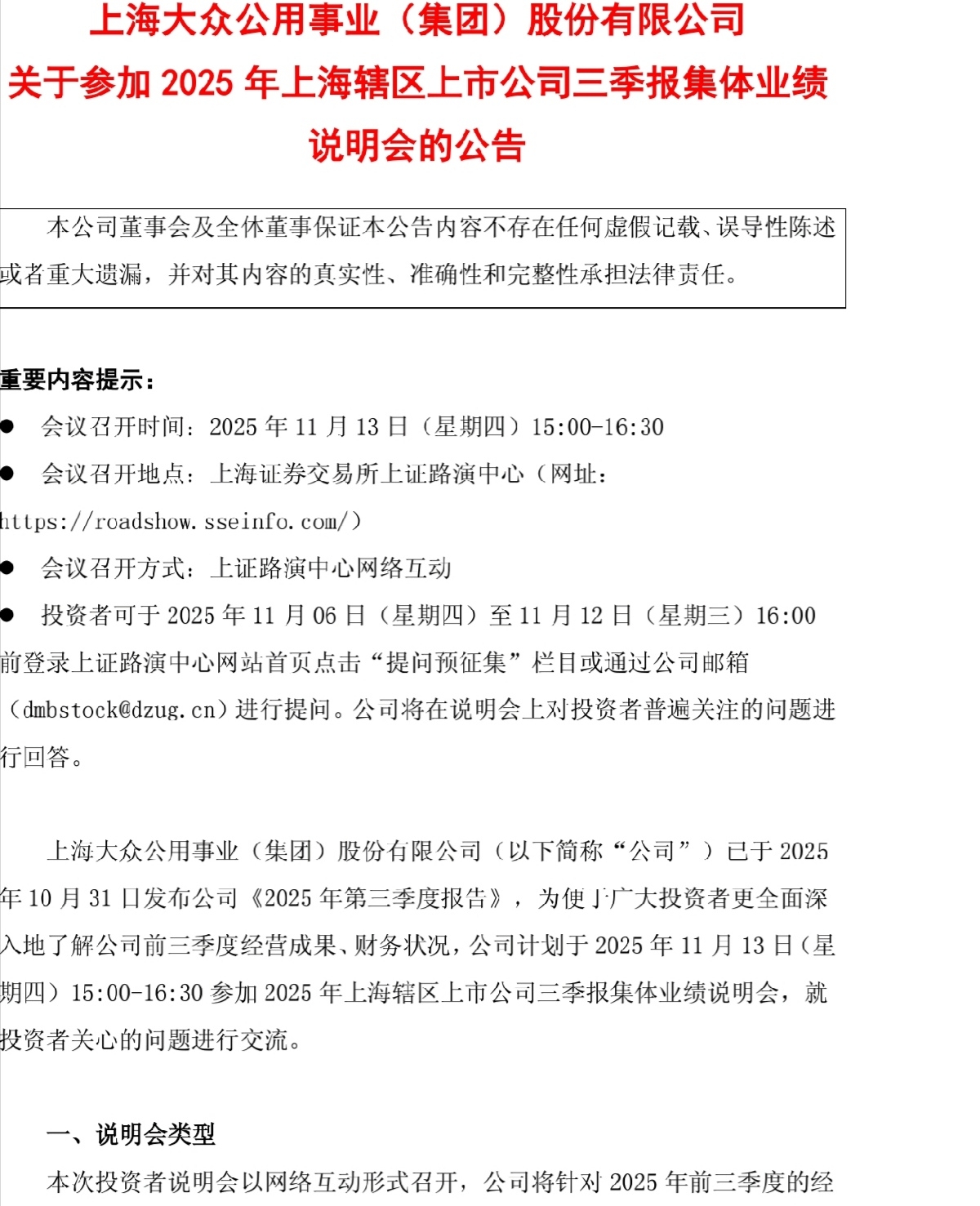 13日大众公用业绩说明会,15:00~~16:30。如图,资料来源,公司常态公告
