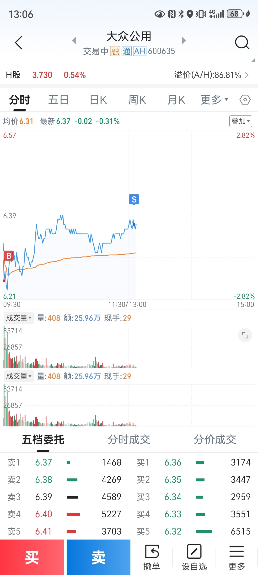 $大众公用(SH600635)$ 全仓只能这样了,减少亏损!