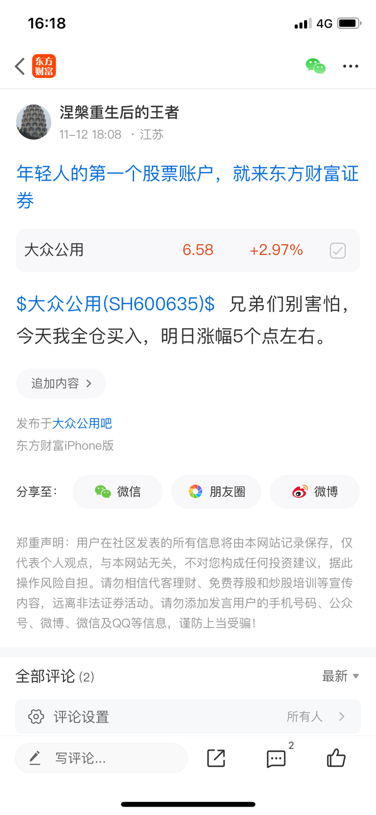 温馨提示: 1.根据《证券法》规定,禁止编造、传播虚假信息或者误导性信息,扰乱证券市场;2.用户在本社区发表的所有资料、言论等仅代表个人观点,与本网站立场无关,不对您构成任何投资建议。用户应基于自己的独立判断,自行决定证券投资并承担相应风险。《东方财富社区管理规定》